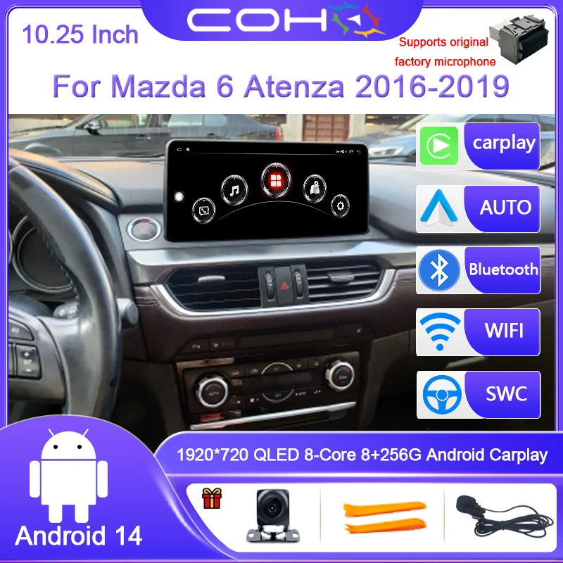 Yo, upgrade dein Mazda 6 2017-2019 mit diesem Android 14 Autoradio! Riesen 12,3 Zoll IPS-Touchscreen – mega klar (1024x600, unterstützt 1080p). Läuft smooth mit 8 Core, 8GB RAM und 256GB ROM. Hast alles dabei: CarPlay, Android Auto, Bluetooth 5.0, 4G LTE, WLAN, Hotspot – immer connected. GPS-Navigation, FM/AM Radio, Lenkradsteuerung inklusive. DSP für krassen Sound – kein Rauschen, nur pure Musik. Split-Screen: Navi und Musik gleichzeitig, super praktisch. Rückfahrkamera-Anschluss dabei – sicher einparken. Einfach installieren mit ISO-Kabelbaum, CAN-Bus, etc. Bootet schnell, touch reagiert super. Ideal für lange Fahrten – Entertainment und Navigation in einem. Kundenservice hilft bei Setup. Hol dir das Ultimate Car Infotainment – fahr nicht ohne!