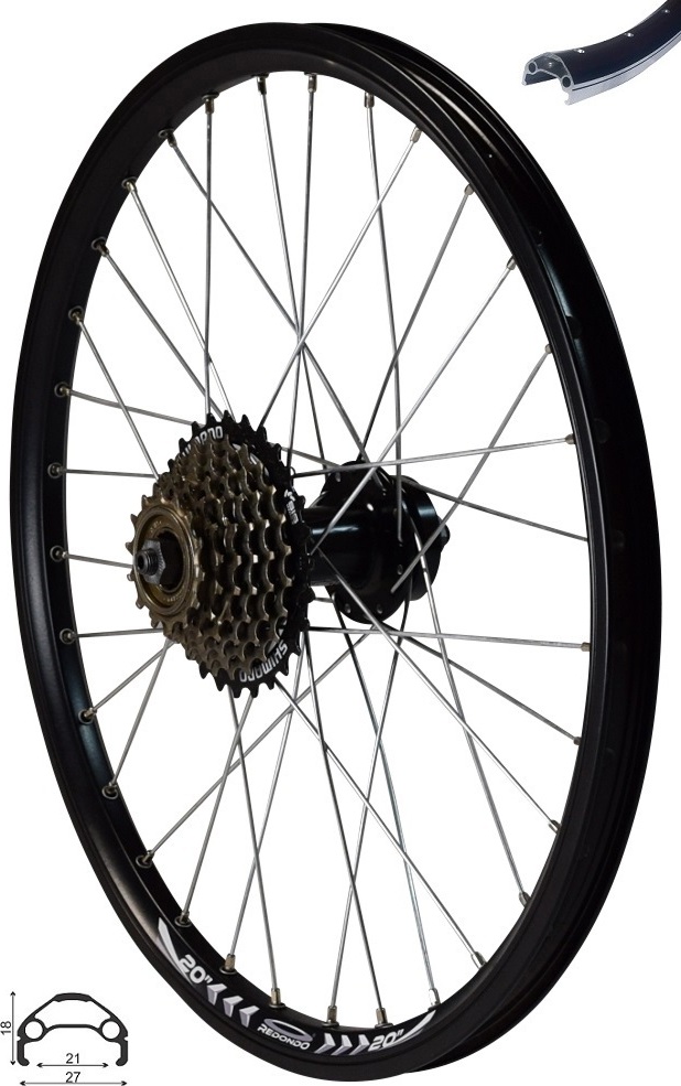 Dieses Redondo 20 Zoll Laufrad Set ist perfekt für dein Fahrrad! Komplett mit Vorderrad, Hinterrad und 7-Fach Kranz - alles bereits eingespeicht und zentriert geliefert. Die Hohlkammer-Felgen aus Aluminium 6061-T6 sind geschliffen und super stabil. Mit Schnellspannern kannst du die Räder schnell ein- und ausbauen. Das Vorderrad hat 100mm Einbaubreite, das Hinterrad 135mm - beide mit 36 Speichen für extra Stabilität. Der 7-Fach Kranz mit 14-28 Zähnen ist bereits montiert. Perfekt für 20 Zoll Fahrräder mit Reifen von 28-62mm Breite. Einfach einbauen und losfahren! Ob für Citybikes, MTBs oder andere 20 Zoll Räder - dieses Set macht dein Fahrrad wieder fit. Alles aus einer Hand und ready to ride!
