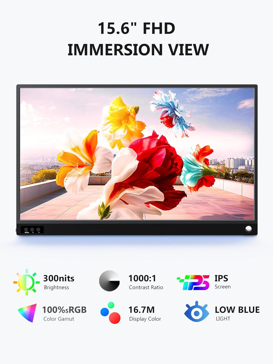 Brauchst du mehr Bildschirmfläche unterwegs? Dieser 15,6 Zoll portable Monitor ist deine Lösung! Superleicht mit nur 1,39 Pfund und ultraflach - passt in jede Tasche. Mit Full HD 1080p Auflösung und IPS-Technologie siehst du alles gestochen scharf, auch von der Seite. Einfach per USB-C oder HDMI anschließen - keine Treiber nötig! Perfekt fürs mobile Office, Gaming oder wenn du mal von unterwegs arbeiten musst. Der mitgelieferte Ständer und Stift geben dir flexible Aufstellmöglichkeiten. Besonders praktisch: Du kannst den Monitor auch hochkant nutzen - ideal für Programmieren oder lange Texte. Mit blaulichtreduziertem Display schonst du deine Augen bei langer Nutzung. Ob mit Laptop, PC, Smartphone oder Spielekonsole - dieser Monitor erweitert deine Möglichkeiten! Immer und überall einen zweiten Bildschirm dabei - so macht arbeiten Spaß!