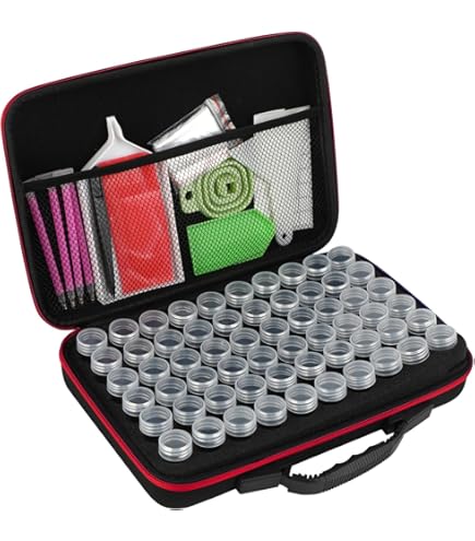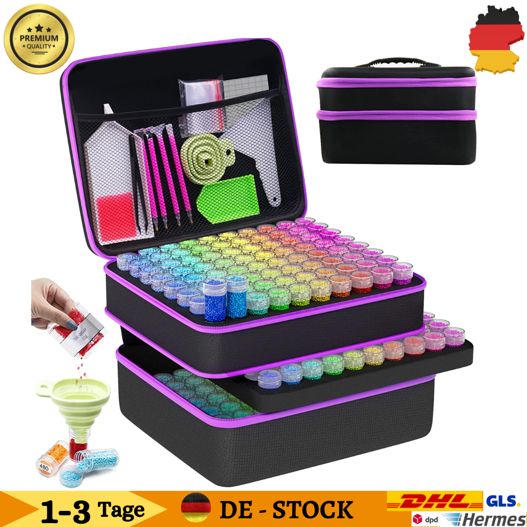 Endlich Ordnung in deinem Diamond Painting Hobby! Diese superpraktische Aufbewahrungsbox von TAVOLOZZA hat alles, was du brauchst: 60 Flaschen für deine Diamanten, zusammenklappbaren Trichter, Pinzette, 3 Diamantstifte, 3 Anti-Ermüdungsgriffe, 2 Schalen, Korrekturwerkzeug und vieles mehr. Mit 70 Aufklebern findest du immer schnell die richtige Farbe. Der ausziehbare Tragegriff macht die Box perfekt für unterwegs - ob im Urlaub oder bei Freunden. Das stilvolle Design sieht auch zu Hause super aus. Aus hochwertigem Material und sehr stabil. Übrigens: Die Box eignet sich auch prima zur Aufbewahrung von Schmuck oder anderen kleinen Accessoires. Ein tolles Geschenk für alle DIY-Fans!