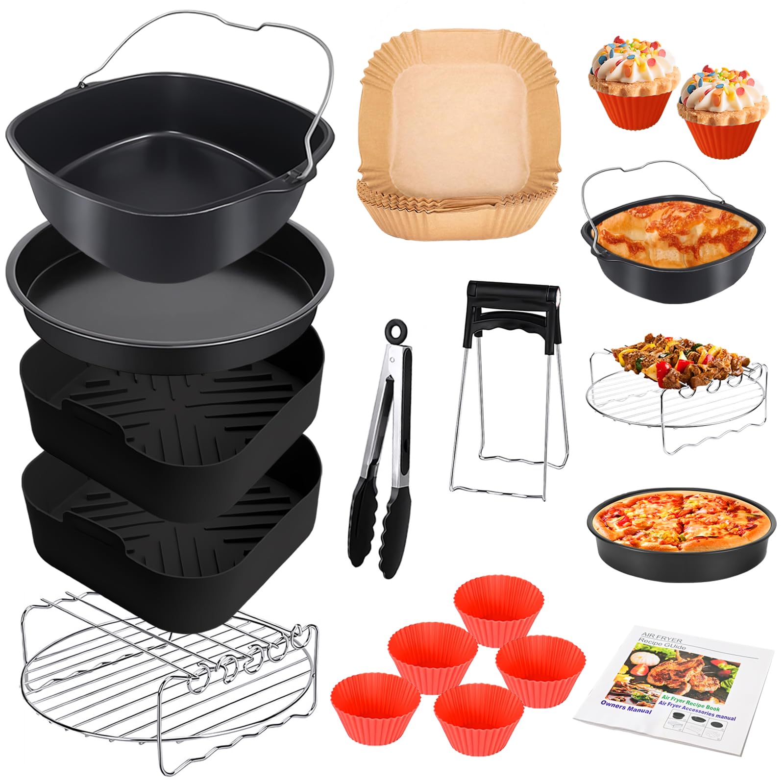 Hey, dieses 7-teilige Set ist ja mal die perfekte Erweiterung für deine Heißluftfritteuse! Egal ob du eine COSORI, Philips, Ninja oder andere Marke hast - hier findest du alles, was das Kochherz begehrt. Und das beste: Alles ist BPA-frei und absolut unbedenklich.