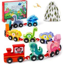 • Dinosaurier Holz Zug Mit Zahlen - Magnetspielzeug Für Kinder 3-6 Jahre