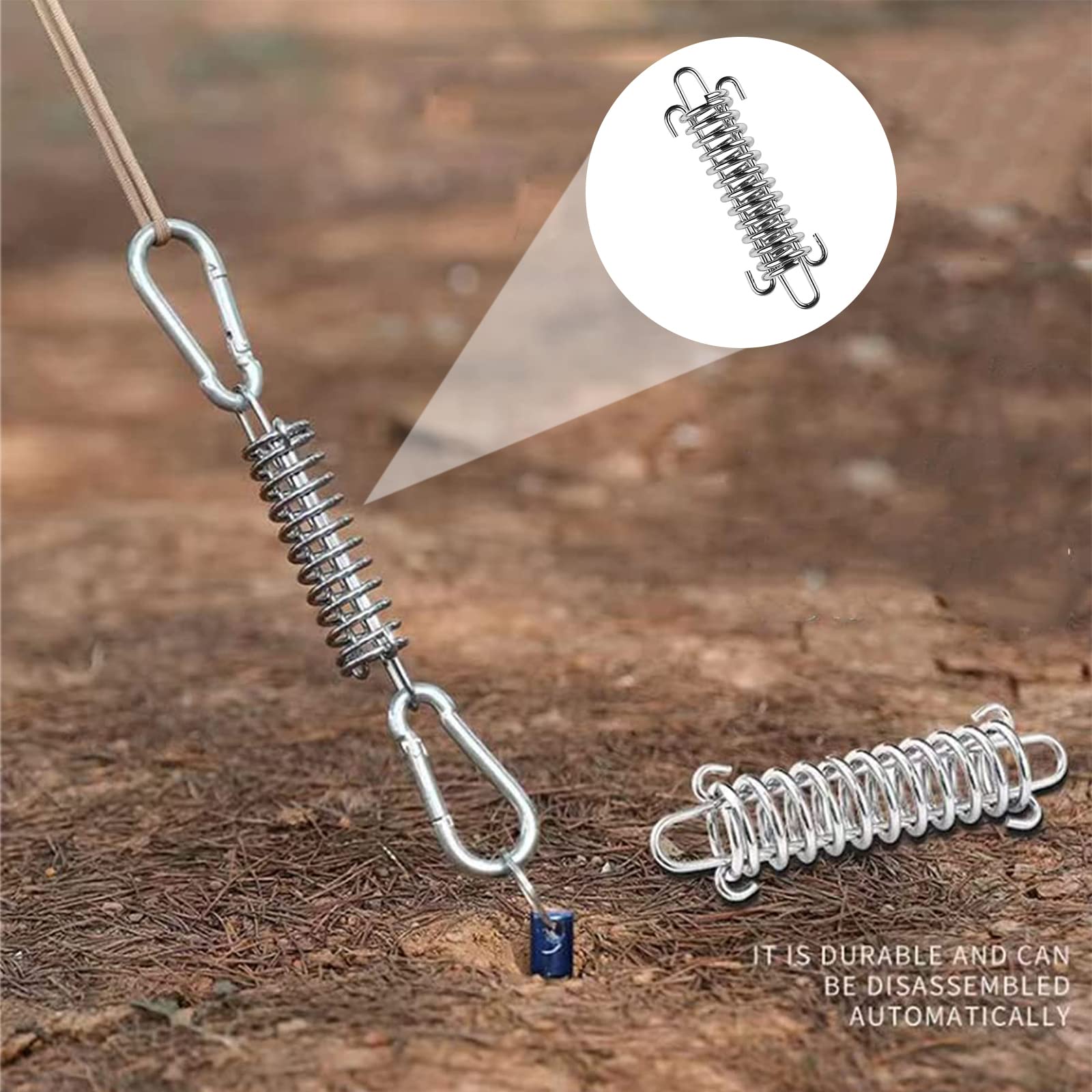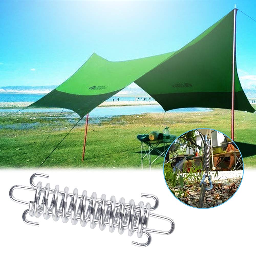 Perfekte Spannung für dein Outdoor-Equipment! Dieses Set mit 4 Edelstahl-Zugfedern und 8 Karabinern ist der ideale Helfer für Camping und Garten. Jede Feder misst 11,5 x 3,5 cm und besteht aus robustem Edelstahl - rostfrei und extrem langlebig. Die Karabiner aus Aluminiumlegierung (6 x 3 cm) sind ebenfalls wetterfest und stabil. Das geniale Feder-System passt sich automatisch wechselnden Windverhältnissen an - dein Zelt oder Sonnensegel bleibt immer straff gespannt. Einfache Montage ohne Werkzeug - einfach Feder zwischen Zelt und Hering spannen oder für Sonnensegel verwenden. Vielseitig einsetzbar: Für Zelte aller Art, Markisen, Hängematten, Planen oder Sandsäcke. Die Karabiner eignen sich auch super zum Befestigen von Ausrüstung oder als Haustierleine. Kompaktes Set für unterwegs - alles was du für stabile Spannung brauchst. Nie wieder schlaffe Zelte oder wackelige Sonnensegel!