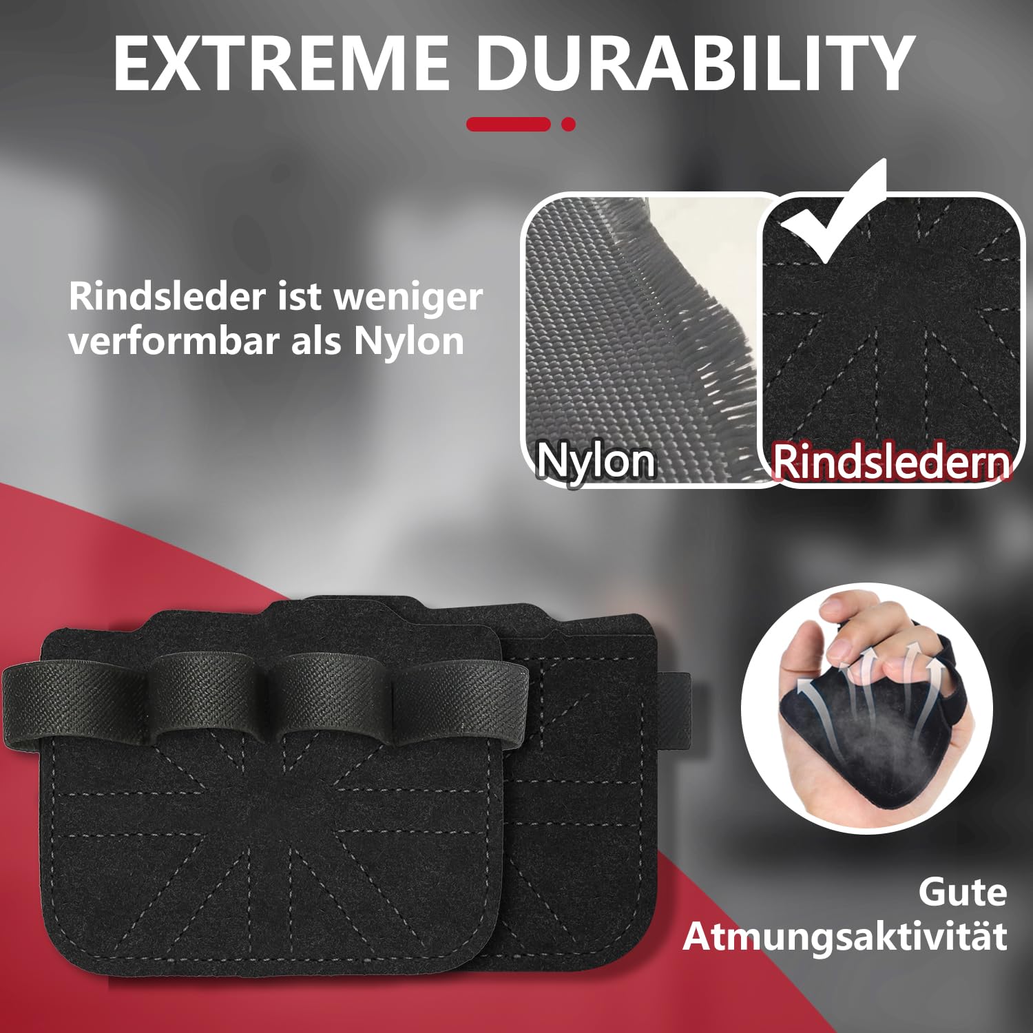Hey, diese Griffpolster aus echtem Rindsleder sind ja der Hammer fürs Training! Super einfach anzuziehen - in 5 Sekunden bist du ready. Das Rindsleder wird mit der Zeit immer weicher und bequemer, viel besser als diese Nylon-Teile. Die 9,3 cm breite Kontaktfläche verteilt den Druck super gleichmäßig auf deine Handflächen - keine Blasen mehr! Schützt deine Hände und Fingerspitzen perfekt vor Schwielen. Perfekt für Klimmzüge, Gewichtheben, Rudern - basically alles wo du Griffkraft brauchst. Und da nur die Handflächen bedeckt sind, hast du totale Bewegungsfreiheit. Einfach ein Game-Changer für dein Training!