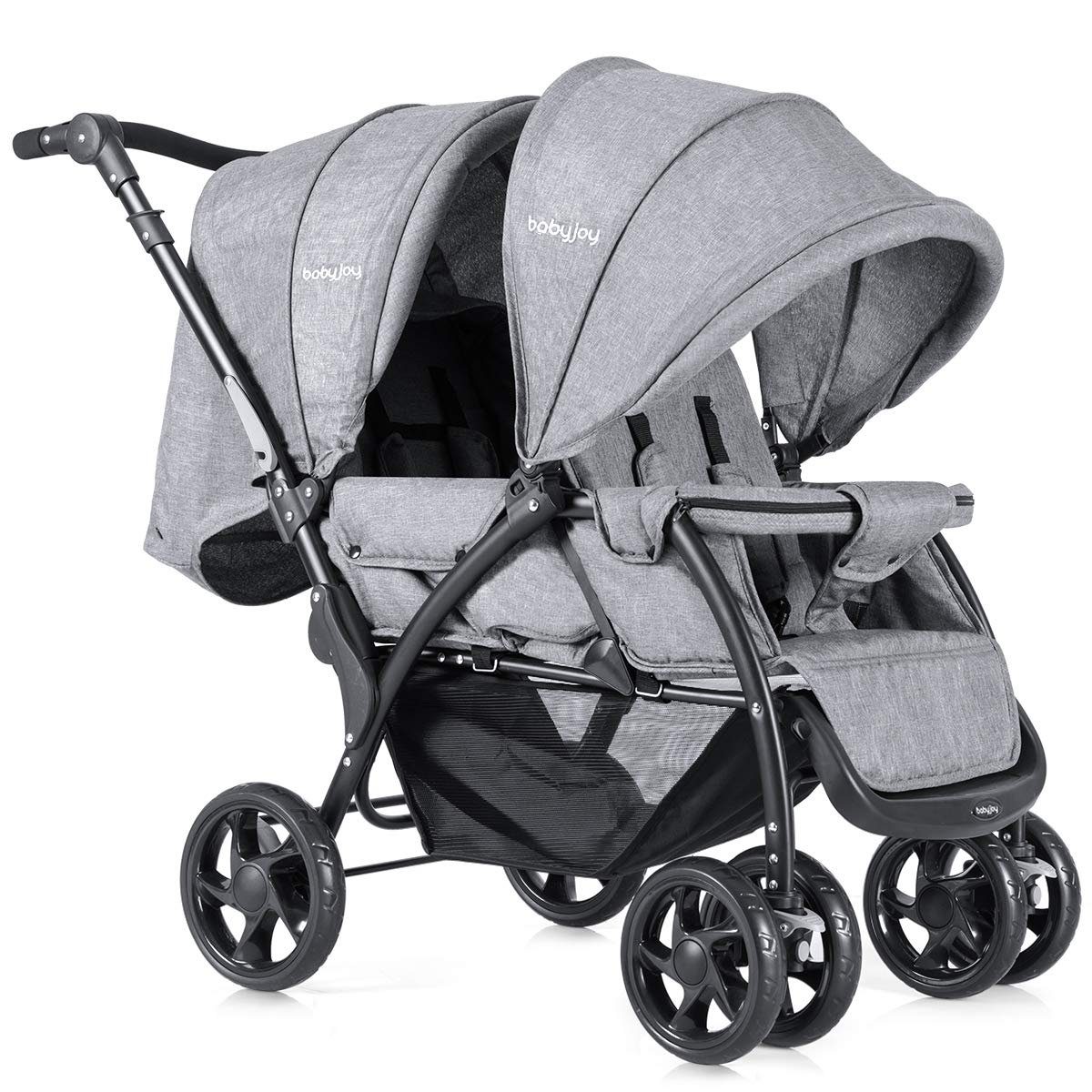 Boah, dieser COSTWAY Geschwisterwagen ist ja mal die perfekte Lösung für Zwillingseltern oder Geschwisterkinder! Der 2in1 Buggy kann sowohl geschoben als auch gezogen werden - je nachdem was praktischer ist. Mit nem 5-fach verstellbaren Schiebebügel und nem 0-90° verstellbaren Ziehgriff ist er super flexibel. Für Kinder ab 6 Monaten geeignet, mit nem Maximalgewicht von 25kg pro Sitz. Die stoßdämpfenden PU-Räder mit Federung machen jede Fahrt smooth - ob auf Asphalt, im Park oder auf unebenen Wegen. Die Vorderräder können für 360° Drehung oder Geradeausfahrt eingestellt werden, die Hinterräder haben eine praktische Ein-Schritt-Bremse. Mit verstellbarem Verdeck sind deine Kleinen vor Sonne geschützt. Und das Zubehör ist mega praktisch: Becherhalter, Tablett, Aufbewahrungstasche - alles dabei was man unterwegs braucht. Zusammenklappbar auf 51x57x92cm - passt auch in kleinere Kofferräume. Aus robustem Oxford-Gewebe und Metallrahmen - hält was aus! Perfekt für Familienausflüge, Einkäufe oder Reisen. Mach dir das Leben mit zwei Kindern leichter - mit diesem durchdachten Geschwisterwagen!
