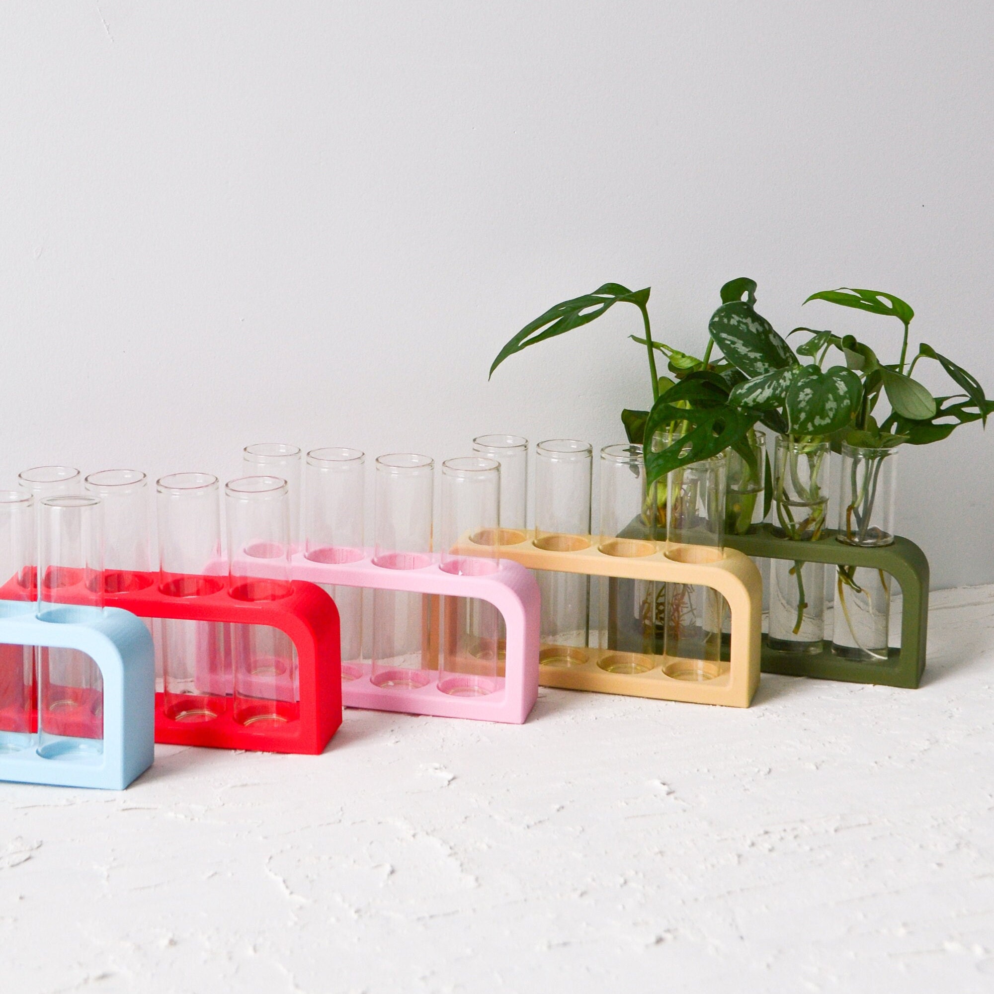 Super praktisch für alle Pflanzenfans! Dieses Reagenzglas-Set besteht aus 5 robusten Borosilikatglas-Vasen (je 11x3 cm) und einem massiven Holzständer (25x3,8x4 cm) in schwarz. Perfekt für Hydrokultur: Du siehst die Wurzeln deiner Pflanzen beim Wachsen zu! Einfach die Gläser in die Löcher vom Holzständer stecken, Wasser rein, Pflanze dazu - fertig. Das transparente Glas zeigt dir immer genau, wie's deinen grünen Lieblingen geht. Mitgeliefert wird eine praktische Reinigungsbürste, damit die Vasen immer schön sauber bleiben. Ideal für Kräuter, Ableger, Sukkulenten oder Mini-Farne. Sieht total stylisch aus im Wohnzimmer, Büro oder in der Küche. Macht sich auch super als Geschenk für Pflanzenfreunde. Übrigens: Keine Montage nötig, einfach auspacken und loslegen! Die Vasen sind spülmaschinenfest und der Holzständer ist richtig stabil. Perfekt um natürliche Deko in deine vier Wände zu bringen und deine Pflanzenbabys beim Großwerden zu beobachten. Egal ob du Anfänger oder Profi bist - mit diesem Set kannst du nichts falsch machen!