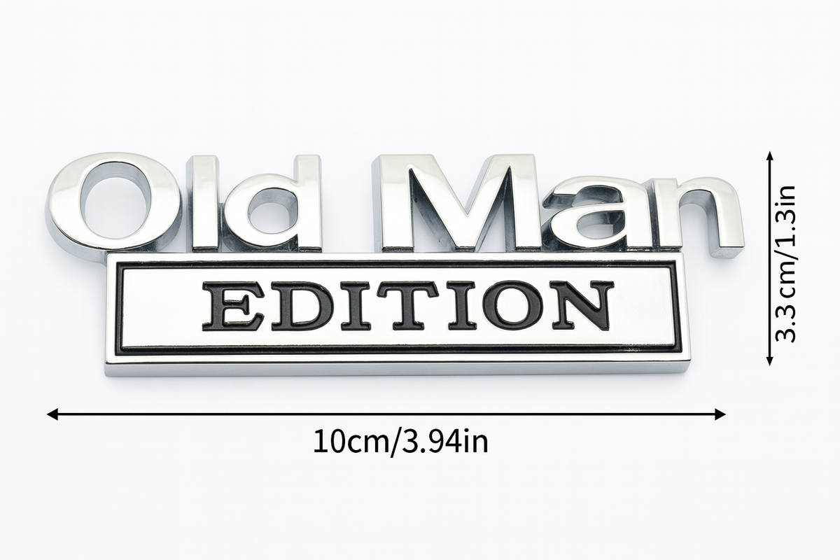Lustiger Auto-Spaß gefällig? Diese 'Old Man Edition' Aufkleber bringen jeden zum Schmunzeln! Aus hochwertiger Zinklegierung, rostfrei, wasserdicht und lichtbeständig. Einfach per Peel & Stick anbringen - keine Werkzeuge nötig! Einfach Oberfläche reinigen, Schutzfolie abziehen und festdrücken. Passt auf die meisten Autos, LKWs, SUVs und Motorräder. Maße: 10x3,3 cm. Du bekommst 2 Stück im Set - perfekt für beide Seiten oder zum Verschenken. Auch super für Werkzeugkästen, Laptops oder Garagenschränke. Das 3D-Design sieht echt klasse aus und ist ein super Gesprächsstarter. Ideal als Geschenk für ältere Fahrer oder jeden mit Humor! Achtung: Vor dem Aufkleben unbedingt die Oberfläche gründlich reinigen!
