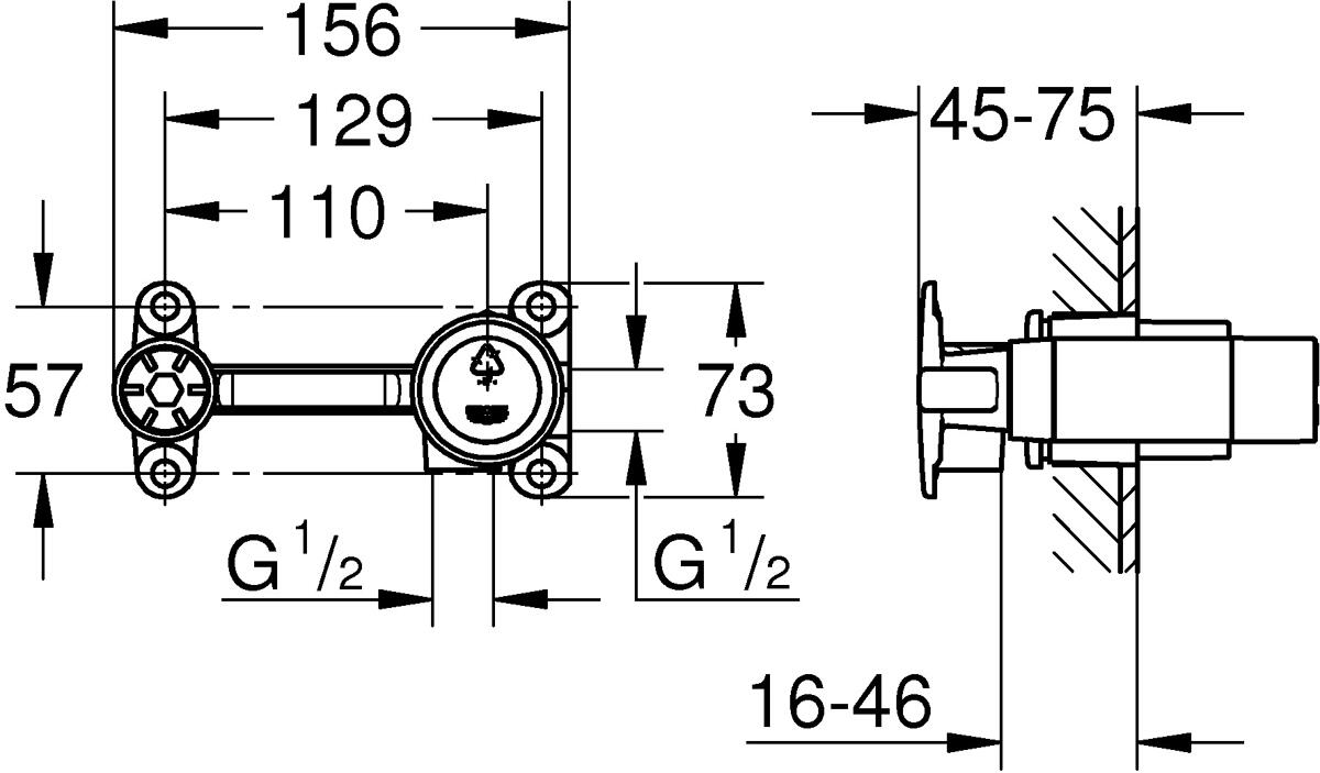 • Grohe Unterputz-Einbaukörper Chrom - Zweihand Für Waschtischarmatur