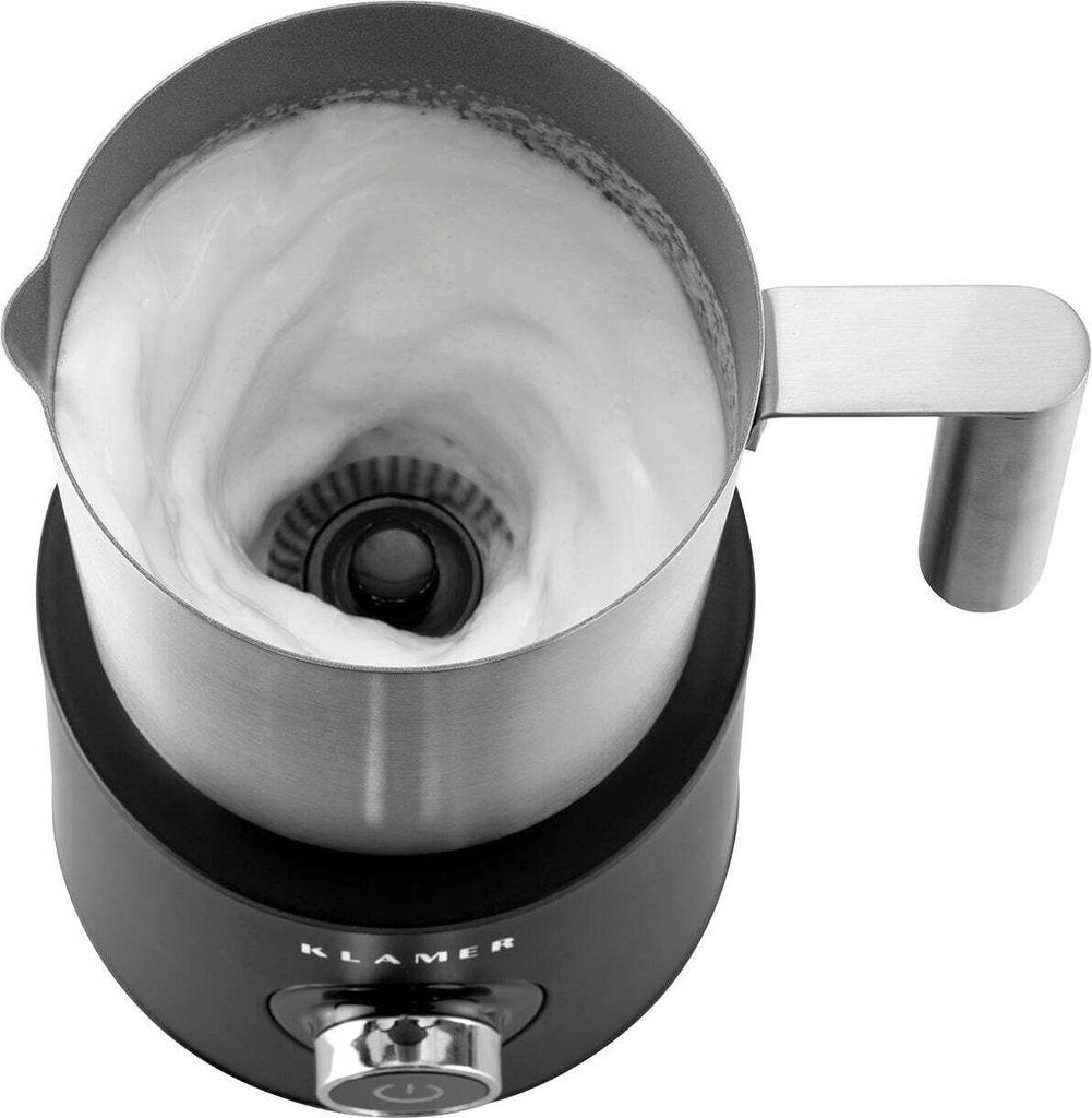 Werde dein eigener Barista! Dieser KLAMER Milchaufschäumer macht perfekten Milchschaum für Cappuccino, Latte Macchiato oder heiße Schokolade. Mit 500W Leistung und 4 Modi: lockeren Schaum, festen Schaum, nur erhitzen oder nur aufschäumen. Fasst bis zu 500ml Milch - ideal für 2-3 Tassen. Aus hochwertigem Edelstahl mit Antihaft-Beschichtung, damit nichts anbrennt. Inklusive 2 Aufsätzen für unterschiedliche Konsistenzen. Einfache Reinigung - viele Teile spülmaschinengeeignet. Auch super für Proteinshakes oder kalte Kaffee-Cocktails. Macht jeden Kaffee zum Café-Erlebnis!