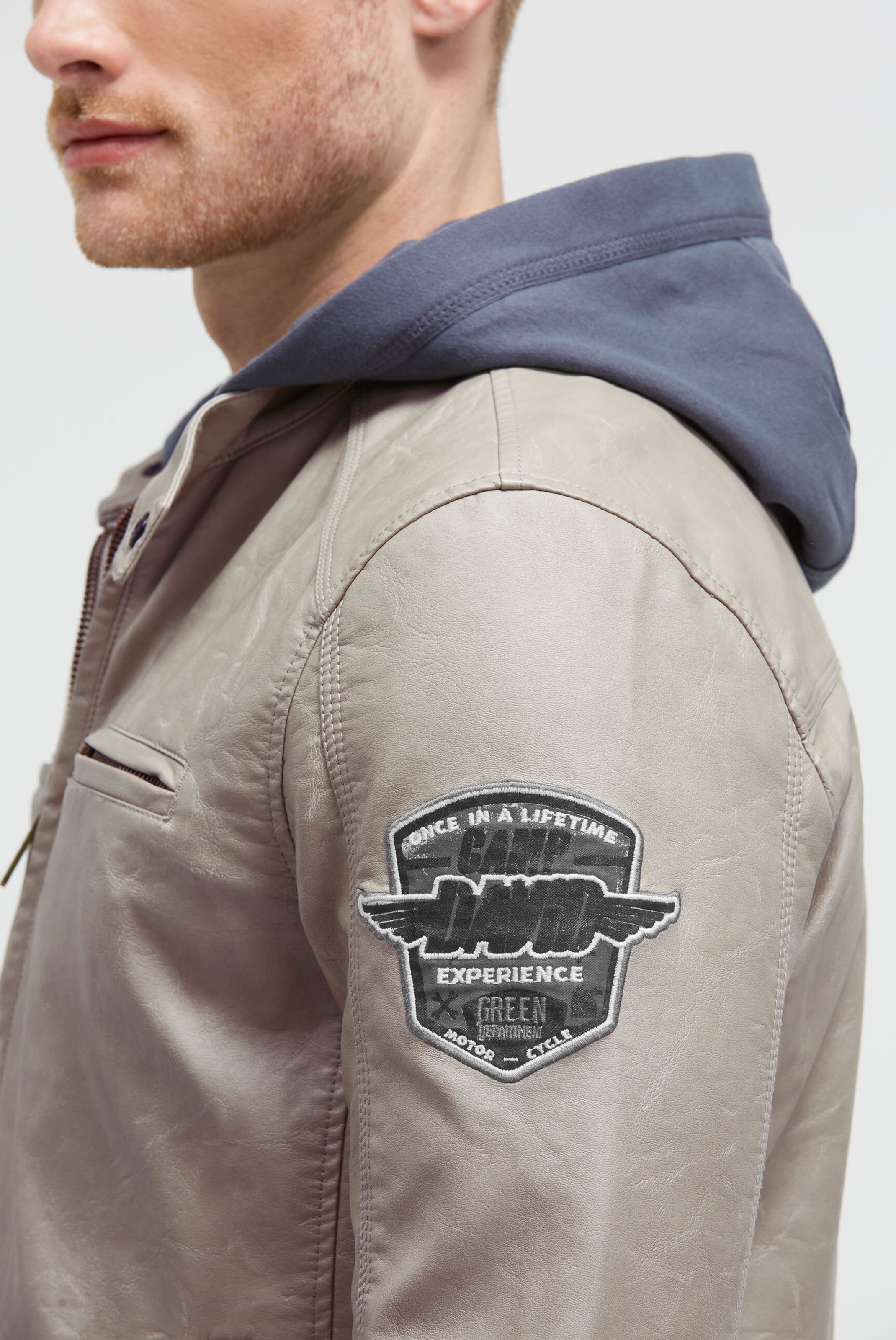Camp David Herren Kunstleder Jacke Mit Abknöpfbarer Kapuze - Biker Style