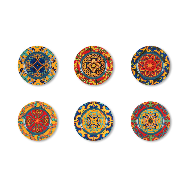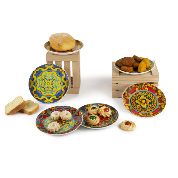 Buongiorno! Dieses wunderschöne 6-teilige Tellerset bringt sizilianisches Flair direkt auf deinen Tisch. Jeder der 15cm Teller ist ein Unikat mit traditionellen Motiven, inspiriert von sizilianischen Majoliken - da fühlt man sich fast wie im Urlaub am Mittelmeer! Perfekt für Aperitif, Desserts, kleine Snacks oder einfach als Deko. Aus hochwertigem Porzellan, spülmaschinenfest und mikrowellengeeignet - also super praktisch für den täglichen Einsatz. Die kräftigen Farben und verspielten Muster machen jede Mahlzeit zu einem besonderen Erlebnis. Ob für die nächste Party, als Geschenk für Italien-Liebhaber oder einfach um deinem eigenen Esstisch mehr Charakter zu verleihen - diese Teller sind ein absoluter Hingucker. Hol dir ein Stück Sizilien nach Hause!