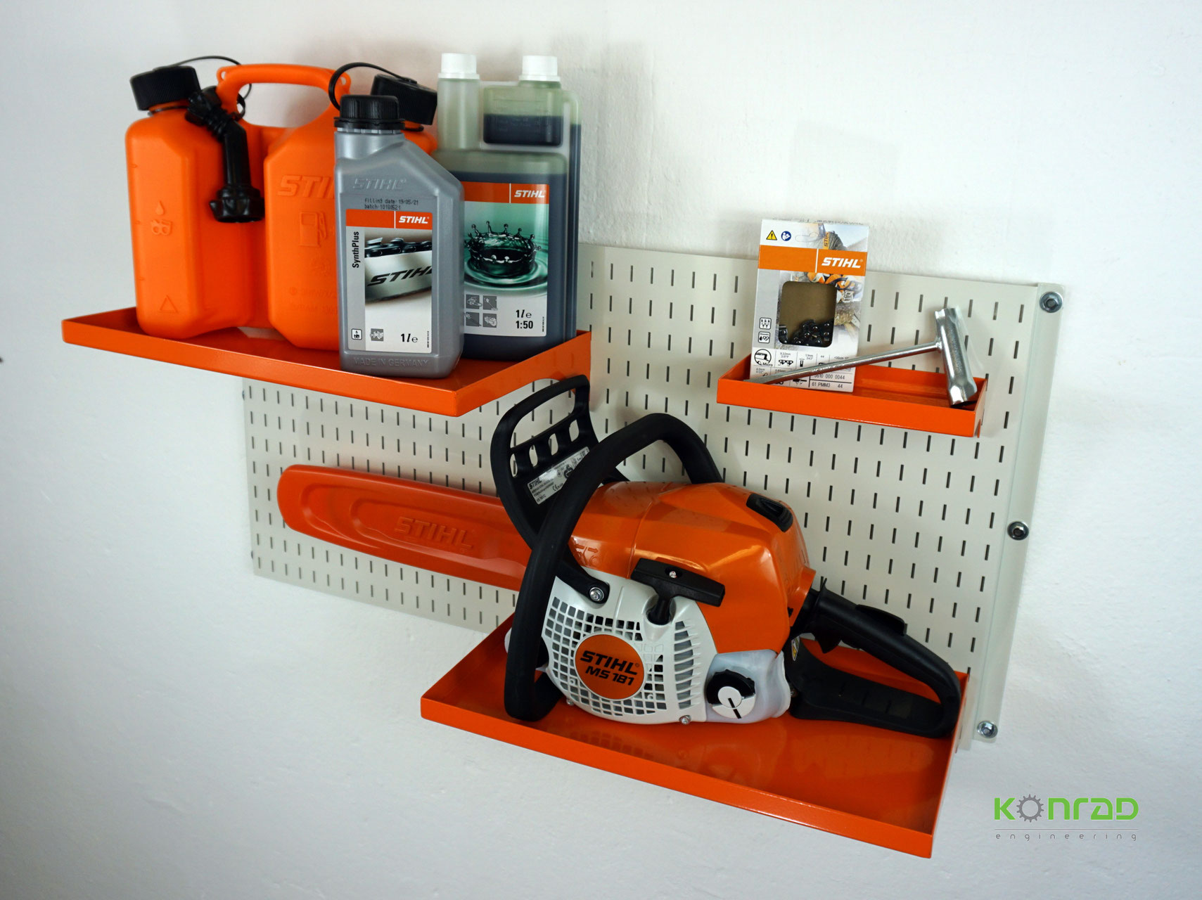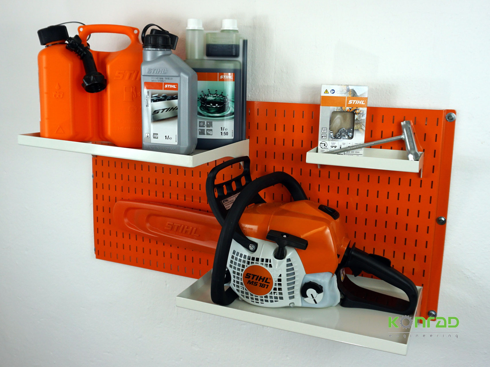 Endlich Ordnung in der Garage! Dieser Kettensägenhalter ist genau das, was du brauchst, um deine Kettensäge sicher und griffbereit zu verstauen. Aus stabilem Eisen und in knalligem Orange - da übersieht man ihn nicht so leicht! Das Komplett-Set hat alles, was du zur Montage brauchst: Halter, 5 Muttern, 8 Schrauben, 3 Expansionsschrauben und sogar einen Schraubendreher. Einfach an die Wand schrauben und schon hat deine Kettensäge einen festen Platz. Passt perfekt für Stihl Modelle wie MS170, MS171, MS172, MS250, MS251 und ähnliche. Der Clou: Unten ist ein Haken für die Kette oder Ölflaschen - alles an einem Platz! Die Kanten sind glatt, damit deine Säge keine Kratzer bekommt. Und deine Hände bleiben auch safe. Wenn du mal nicht sägst, steht die Kettensäge sicher im Halter und nimmt keinen wertvollen Platz weg. Ob in der Garage, im Schuppen oder Werkstatt - mit diesem Halter hast du immer Ordnung und deine Kettensäge ist blitzschnell einsatzbereit. Kein langes Suchen mehr, kein Rumliegen - einfach praktisch!