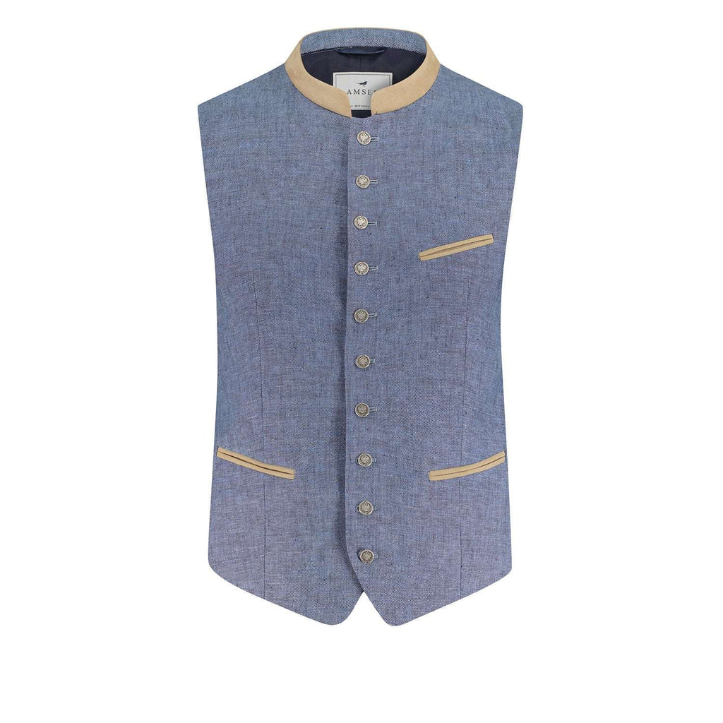 • Leinen Weste Herren V-Ausschnitt - Baumwollmix Mit Doppeltasche Casual
