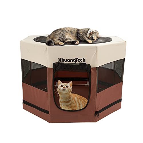 Perfekte Freiheit für deine Samtpfote! Dieser faltbare Laufstall gibt deiner Katze sicheren Auslauf - ob in der Wohnung, im Garten oder beim Camping. Mit 8 Seitenteilen aus robustem Mesh-Gewebe für maximalen Luftstrom und gute Sicht. Das wasserdichte 600D Oxford-Material ist super einfach zu reinigen - einfach abwischen und fertig. Die Reißverschlusstüren bieten einfachen Zugang für dein Tier. Im Handumdrehen aufgebaut oder zusammengeklappt - gefaltet nur 43x32x5cm (Größe M), ideal für die Aufbewahrung oder zum Mitnehmen. Inklusive praktischer Tragetasche für unterwegs. Die verstärkten Ecken und Nähte garantieren Langlebigkeit. Dein Haustier kann drinnen und draußen sicher spielen und entspannen, während du beruhigt bist. Leichtes Gewicht von nur 0,76kg - einfach zu transportieren. Perfekt für Reisen, Camping oder einfach als sicherer Rückzugsort zu Hause. Ein echter Allrounder für alle Katzenbesitzer!