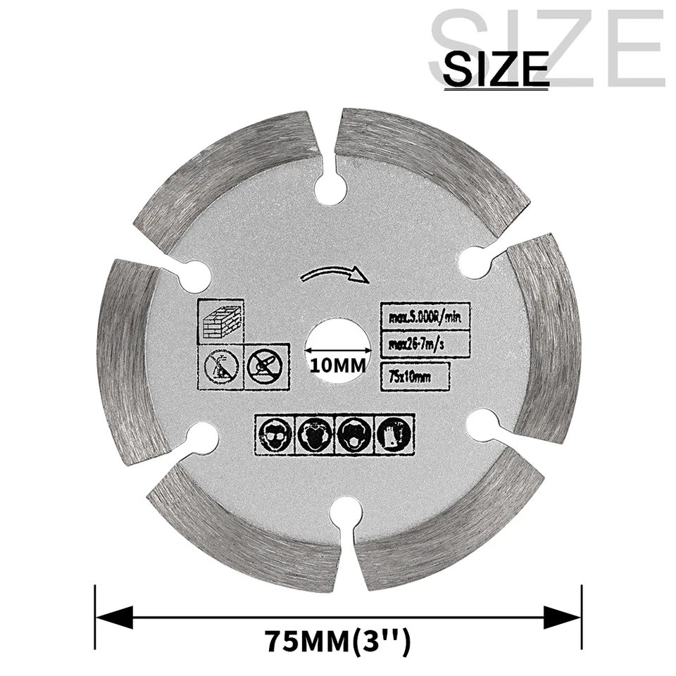 Schneiden wie ein Profi! Diese 3-Zoll-Diamantscheibe meistert Fliesen, Keramik, Beton und Marmor mit Leichtigkeit. Mit nur 75 mm Durchmesser und 10 mm Bohrung passt sie perfekt auf deinen Winkelschleifer. Aus hochwertigem Diamantmaterial - extrem langlebig, wasserfest und hitzebeständig. Ob beim Renovieren, auf der Baustelle oder im Hobbykeller: Diese Scheibe liefert präzise Schnitte ohne Ausfransen. Einfach aufstecken, festziehen und loslegen! Ideal für alle Heimwerker-Projekte where es auf Genauigkeit ankommt. Mit diesem kleinen Kraftpaket machst du aus jedem Winkelschleifer ein Präzisionswerkzeug. Achtung: Schutzbrille nicht vergessen - Sicherheit first! Perfekt für dein nächstes DIY-Projekt.