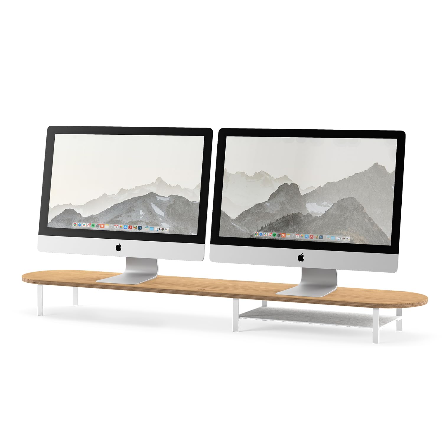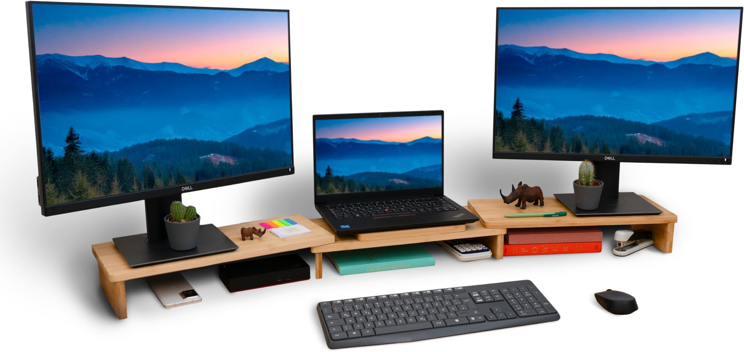 Dieser massive Monitorständer aus echtem Eichenfurnier sieht nicht nur mega-edel aus, sondern ist auch super praktisch! Handgefertigt in der EU und trägt problemlos bis zu 100 kg - also auch zwei große Monitore plus Zubehör. Maße: 105 x 23 cm, gibt dir extra Stauraum für Tastatur, Notizen oder deine Lieblingspflanze. Durch die ergonomische Höhe entlastest du Nacken und Rücken - endlich entspanntes Arbeiten! Das Holz ist mit Ölwachs behandelt, fühlt sich toll an und jede Maserung ist ein Unikat. Ob im Homeoffice oder Büro - mit diesem Ständer wird dein Arbeitsplatz zum Hingucker. Nachhaltig, stabil und einfach schön!