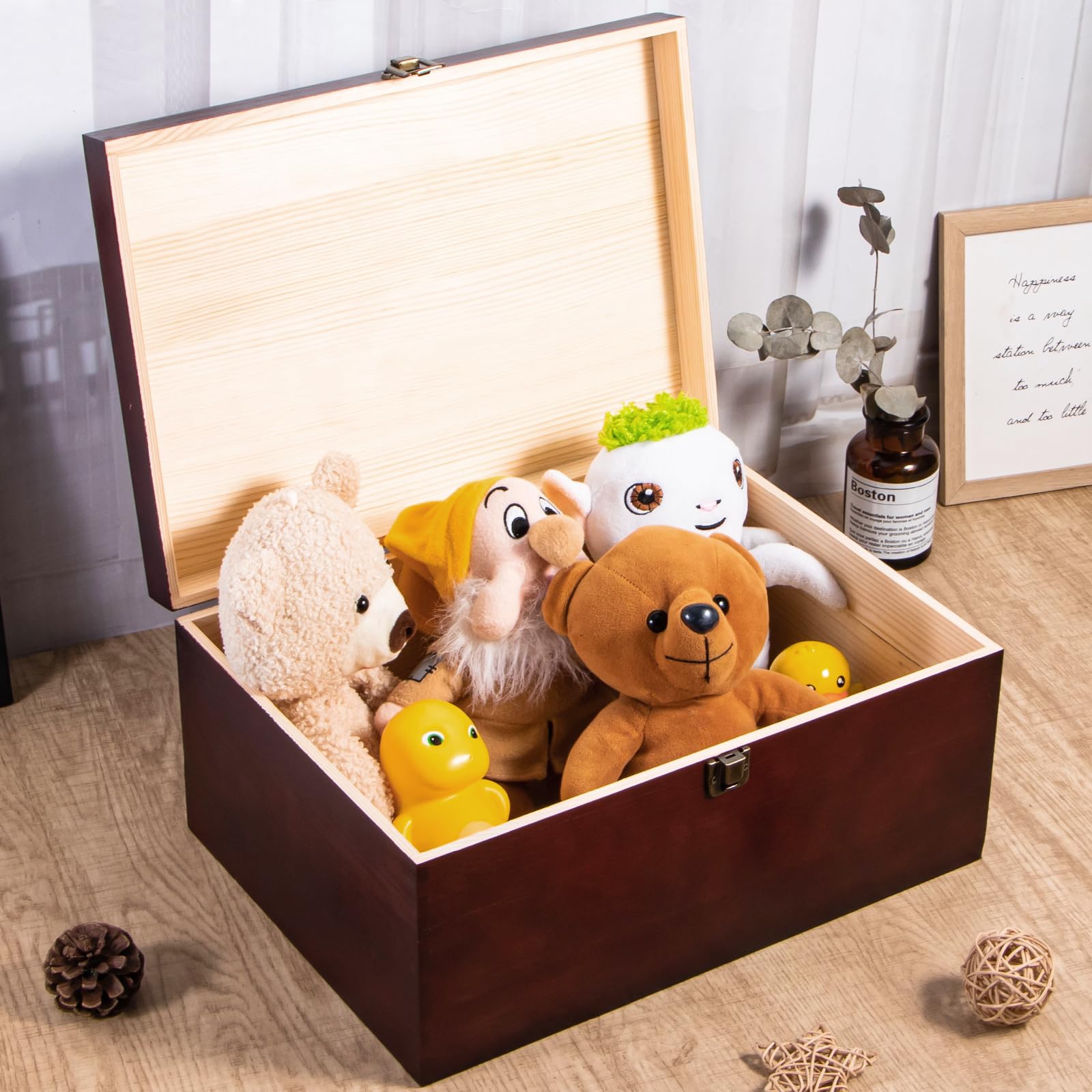 Die perfekte Aufbewahrungslösung im charmanten Landhausstil! Unsere Budesoko Holzkiste aus Massivholz (30,5x23,5x15 cm) mit praktischem Deckel und metallener Schnalle. Super robust und langlebig - ideal für Schmuck, Fotos, Briefe oder als Nähkästchen. Die glatte Oberfläche lässt sich toll mit Aufklebern individualisieren. Perfekt als Geschenk oder Deko-Stück im Wohnzimmer. Braune Lackierung verleiht ihr diesen besonderen Vintage-Charme. Endlich Ordnung mit Style - und alles an einem Platz!