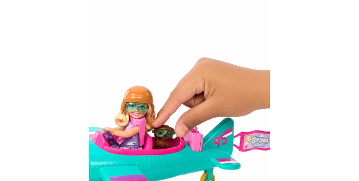 Abheben mit Barbie Chelsea! Dieses süße Flugzeug-Spielset bringt Kinderaugen zum Leuchten. Enthält Chelsea-Puppe als Pilotin, buntes Flugzeug mit rollenden Rädern, Hündchen und 5 Zubehörteilen. Der blumenförmige Propeller lässt sich drehen und die Chelsea-Flagge kann hinten am Flugzeug befestigt werden. Chelsea trägt einen niedlichen Rock mit Wolken- und Flugzeugmuster, pinke Schuhe, Helm und Schal. Zusätzliches Zubehör wie Fliegerbrille für Puppe und Hündchen, Koffer und Stickerbogen sorgen für unendlichen Spielspaß. Fördert Rollenspiele und die Fantasie deines Kindes. Perfekt für kleine Reisefans und alle die vom Fliegen träumen. Ab 3 Jahren geeignet - das ideale Geschenk für Geburtstage oder einfach so. Mach dein Kind zum Piloten seiner eigenen Abenteuer!