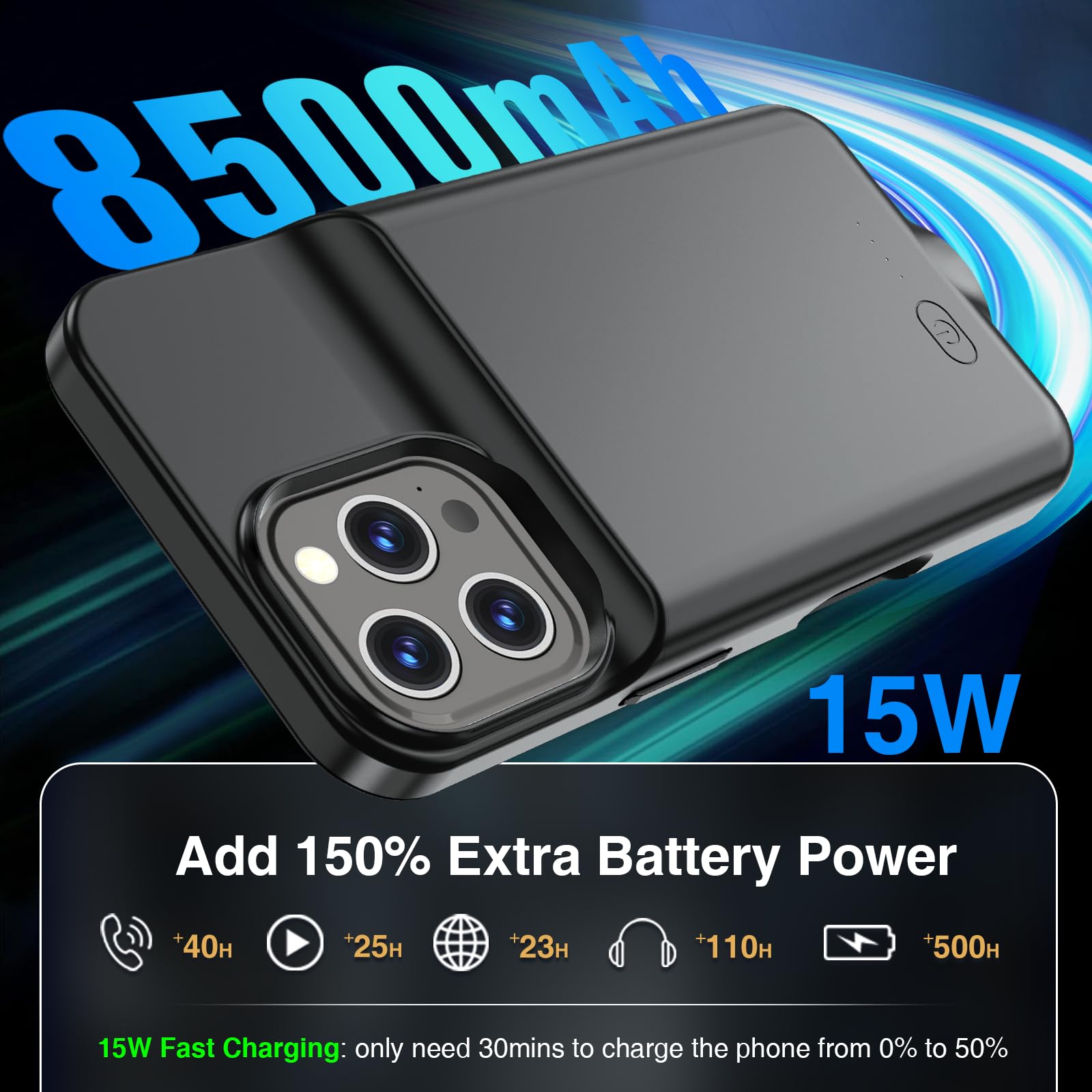 Akkuhülle Für IPhone 16 Pro Max 8500mAh - Ultradünn Mit 15W Schnellladung