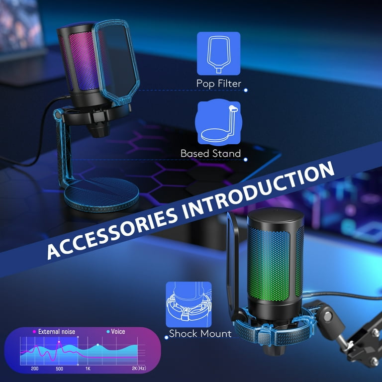 Professionelles Gaming-Mikrofon! USB-Anschluss - einfach einstecken und loslegen. Mit POP-Filter gegen Störgeräusche, Nierencharakteristik für klare Aufnahmen. Galgenstativ mit Tischklemme, Anti-Schock-Halterung. Perfekt für Streamer, Gamer, Podcasts. Macht deine Stimme crystal clear. Einfach aufbauen, anschließen und ab geht's!
