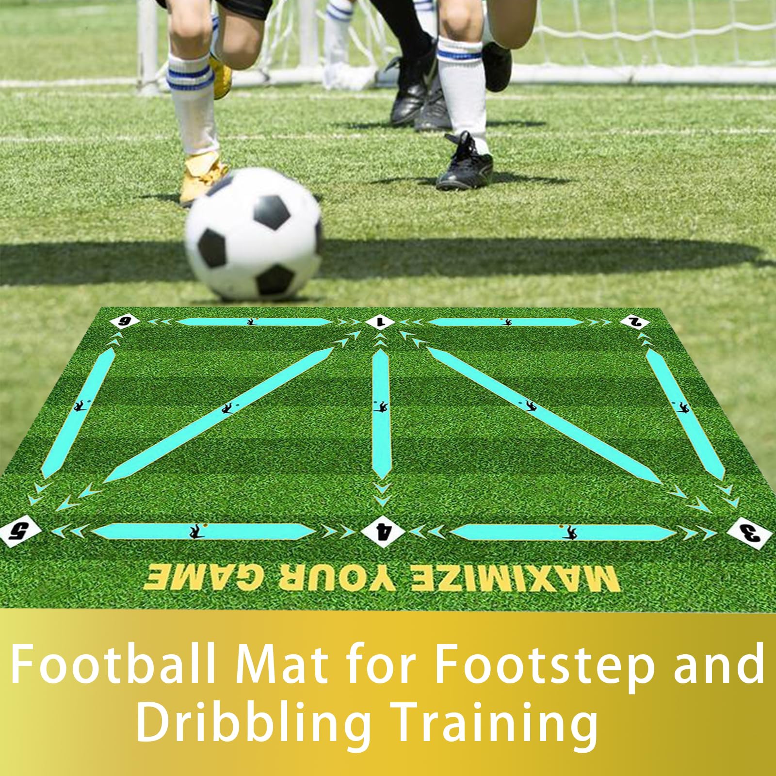 Für alle Fußball-Begeisterten: Diese Trainingsmatte bringt dein Spiel auf nächste Level! Perfekt für Ballkontrolle und Dribbling - das L-förmige Muster trainiert schnelle Richtungswechsel. Deine Fuß-Augen-Koordination wird richtig gut! Die Matte ist rutschfest beidseitig - kein Wegrutschen bei intensivem Training. Mit 23,6x35,4 Zoll ideal für drinnen - egal bei welchem Wetter trainieren! Aus robustem Polyester, weich und elastisch - schont die Gelenke. Super für Jugendtraining, aber auch für Erwachsene geeignet. Verbessere deine Technik ohne teures Equipment - einfach Matte ausrollen und loslegen! Die Größe ist praktisch für zu Hause - nach dem Training zusammenrollen und wegstellen. Ein tolles Geschenk für junge Kicker, die besser werden wollen. Ob alleine oder mit Freunden - mit dieser Matte macht Training richtig Spaß! Werde zum Dribbel-König - step by step!