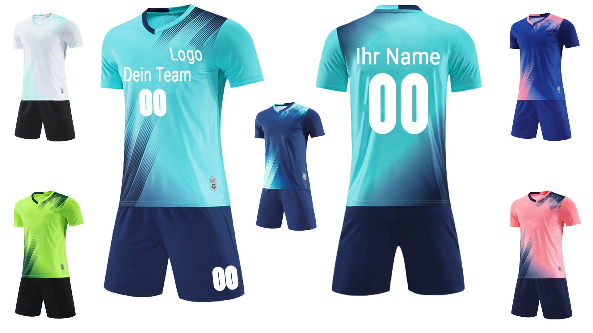 Willst du dein eigenes Team-Trikot designen? Mit diesem personalisierbaren Fußball Trikot Set kannst du deine eigenen Wünsche umsetzen! Du kannst Namen, Nummern, Teamnamen, Sponsoren-Logos oder eigene Designs aufdrucken lassen. Die Trikots sind aus weichem, atmungsaktivem Polyester gefertigt, der Schweiß absorbiert und dich beim Spielen kühl und trocken hält. Wichtig: Es handelt sich um asiatische Größen, also bitte genau die Größentabelle beachten! Perfekt für Vereine, Mannschaften oder als Geschenk für fußballbegeisterte Freunde und Familie. Du kannst sogar die Namen deiner Lieblingsstars nachmachen! Einfach dein Wunschdesign per E-Mail mitteilen und wir setzen es so gut wie möglich um. So wird jedes Trikot zu etwas Besonderem!