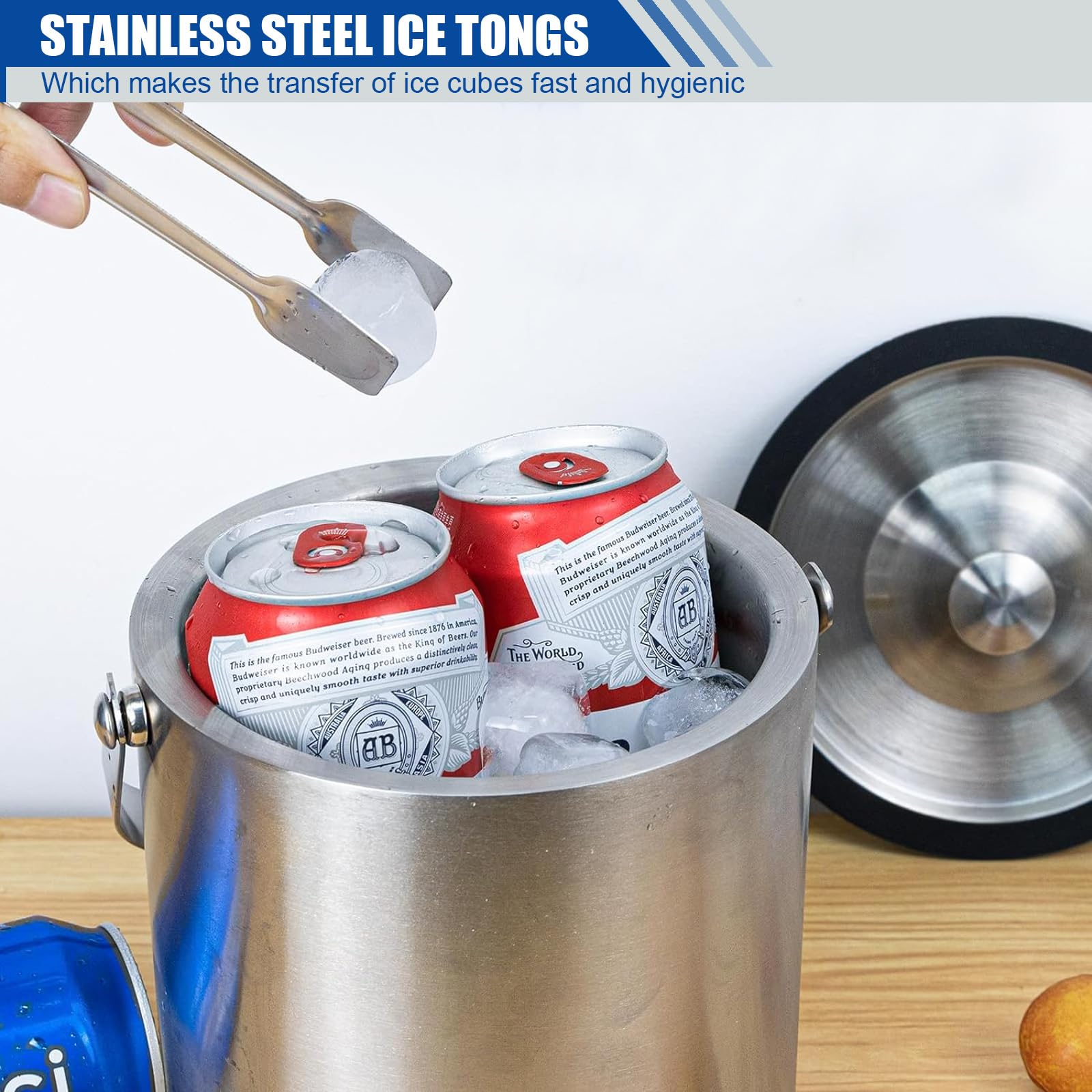Wein, Sekt oder Champagner - mit diesem edlen Edelstahl-Eiskübel bleiben deine Getränke stundenlang kalt! Der 2-Liter Behälter hat eine doppelwandige Isolation, die die Kälte super hält. Einfach mit Eiswürfeln füllen, die Flasche rein - und schon kannst du deine Gäste beeindrucken. Das elegante Design passt zu jeder Gelegenheit, ob romantisches Dinner oder große Gartenparty. Mit dabei sind Deckel, Eisclip und Abstandshalter. Das mattierte Finish verhindert lästige Fingerabdrücke. Und wenn du es besonders kalt magst: Stell den Eiskübel vorher für ne Stunde in den Kühlschrank. So wird dein Wein zur perfekten Temperatur serviert - jedes Mal!
