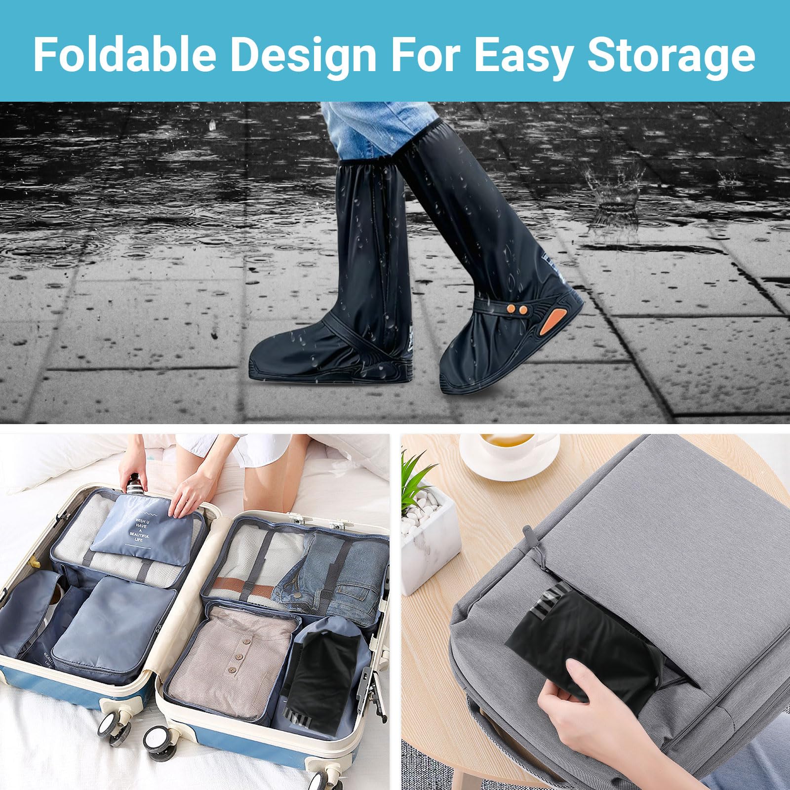 Nach Gebrauch einfach mit Wasser abspülen und trocknen lassen. Die Überschuhe lassen sich platzsparend zusammenfalten und in jeder Tasche verstauen.