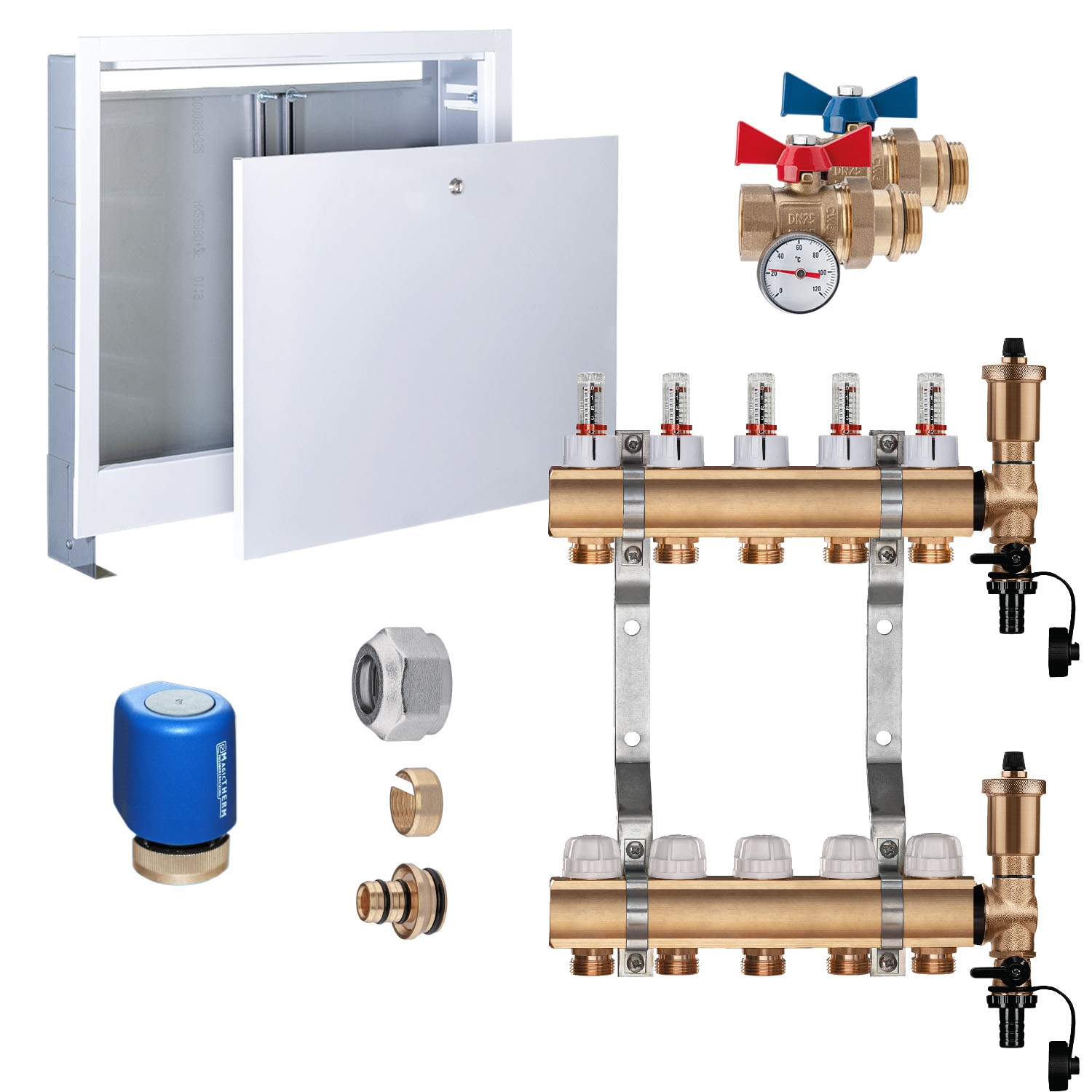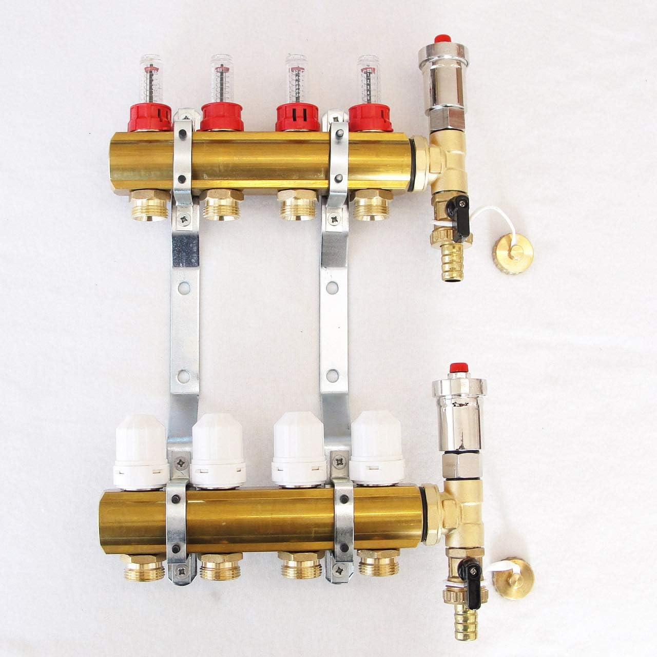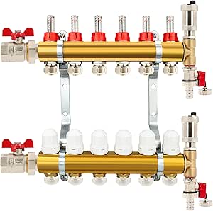 Professionelle Wärmeverteilung für deine Fußbodenheizung! Der Millto™ Verteiler aus Messing sorgt dafür, dass die Wärme gleichmäßig in alle Räume kommt. Mit 3 Heizkreisen und automatischer Entlüftung hast du alles, was du für einen effizienten Betrieb brauchst. Das komplette Set inklusive Flowmetern und Thermostatventilen ist sofort einsatzbereit. Aus hochwertigem Messing und Edelstahl gefertigt, garantiert dieser Verteiler Langlebigkeit und zuverlässige Performance. Die präzisen Anschlüsse (1/2 Zoll für die Ventile, 1 Zoll für den Balken) machen die Installation zum Kinderspiel. Mit Chrom-Griffen sieht das Teil nicht nur professionell aus, sondern ist auch praktisch in der Handhabung. Ob Neubau oder Sanierung - dieser Verteiler ist die Garantie für eine wohlige Wärme in jedem Zimmer. Einfach montieren und sich über perfekt temperierte Räume freuen!