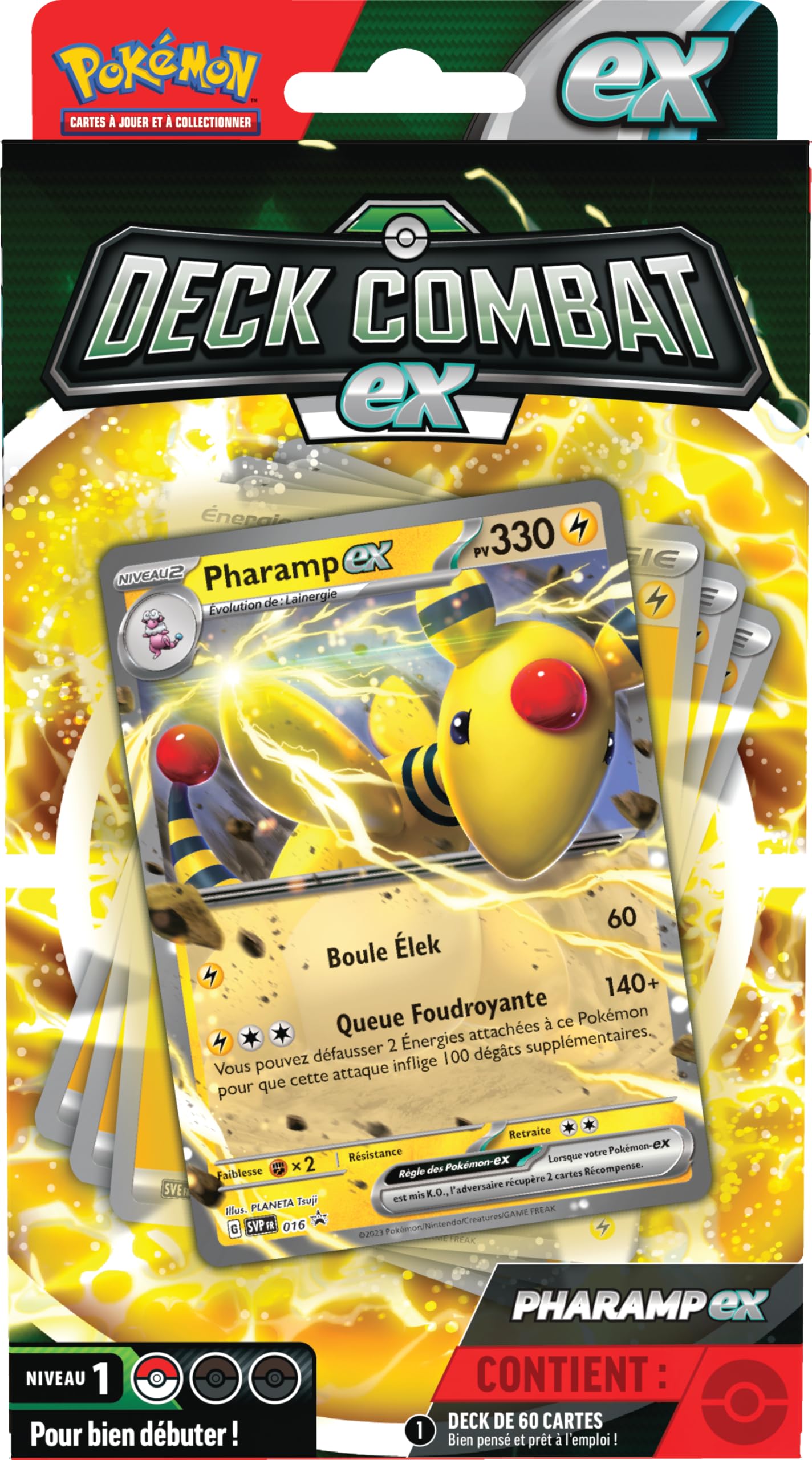 Alter, das neue Pharamp-ex Deck ist richtig krass! Da ist alles dabei was du brauchst um sofort loszulegen: 60 fertige Karten inklusive dem mega-starken Pharamp-ex Pokémon! Kein langes Zusammenstellen nötig - einfach auspacken und spielen! Im Set findest du auch ne Spielmatte, Schadensmarker, ne coole Metall-Münze und ne Code-Karte fürs Pokémon Live TCG. Perfekt für Einsteiger oder wenn du mal was Neues ausprobieren willst. Die Kartenqualität ist wie immer top, und mit Pharamp-ex hast du nen richtigen Power-Spieler in deinem Team! Ob mit Freunden zuhause oder im Pokémon-Turnier - damit machst du richtig was her! Gönn dir das Deck und zeig allen wer der beste Pokémon-Trainer ist! ⚡