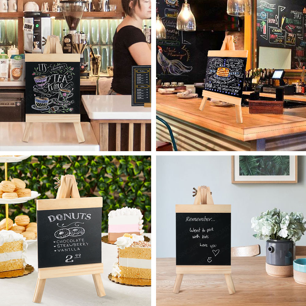 Total praktisch dieses 2er Set mit süßen Schiefertafeln! Jede Tafel misst 36x20cm und kommt mit nem stabilen Holzständer, den du ganz easy mit ner Messingschraube in den Winkel stellst, der dir passt. Perfekt für dein Café, Restaurant oder die nächste Party - ob als Menükarte, Tischkarte oder für persönliche Grüße. Der rustikale Holzrahmen gibt dem ganzen nen tollen Vintage-Look. Einfach mit Kreide draufschreiben, und wenn was nicht gefällt, mit nem feuchten Tuch abwischen und neu beschriften. Super platzsparend zu verstauen, weil sie sich zusammenklappen lassen. Mit 267g pro Tafel sind sie leicht, aber stabil genug für den täglichen Einsatz. Egal ob für die Hochzeitsdeko, Geburtstagsparty oder als täglicher Speisekarten-Wechsler - diese Tafeln machen einfach überall was her!