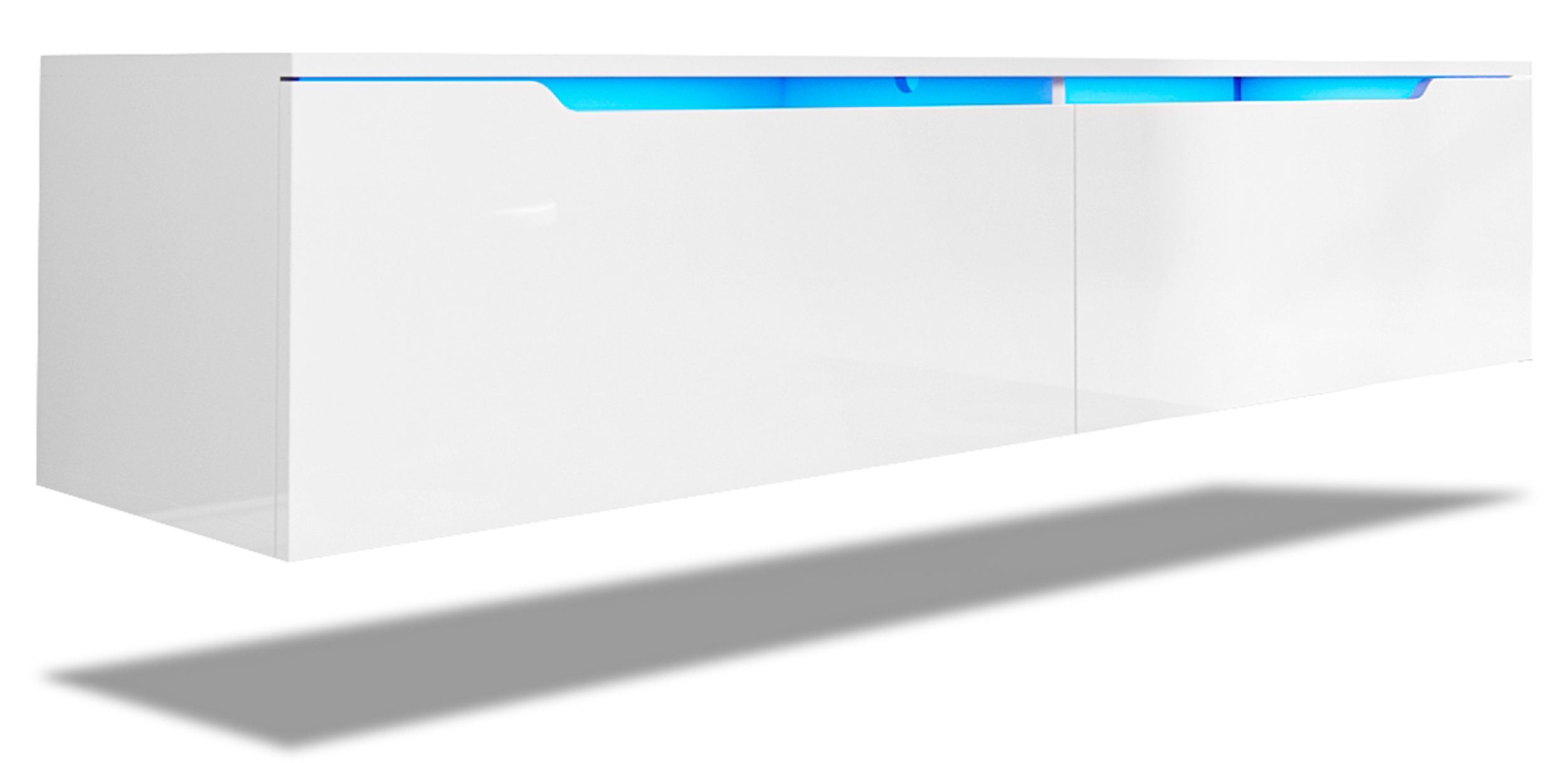 Dieser elegante TV-Schrank von SONNI bringt modernes Design in dein Wohnzimmer! Maße: 140x35x30 cm (BxTxH) in strahlendem Weiß Hochglanz. Besonderes Highlight: Integrierte LED-Beleuchtung mit Fernbedienung - 12 Farben, 4 Grundfarben, 3 Farbwechselprogramme und Dimmfunktion. Zwei Montagemöglichkeiten: Kann entweder an die Wand gehängt oder bodenstehend aufgestellt werden. Aus hochwertigen Materialien: 15mm MFC-Korpus + 3mm MDF mit weißer UV-Oberfläche - kratzfest und leicht zu reinigen. Praktische Features: Kabelloch auf der Rückseite für aufgeräumte Kabel, Soft-Close-Scharniere für geräuschlos schließende Türen, griffloses Design für modernen Look. Stabile Konstruktion - trägt sicher deinen Fernseher und andere Geräte. Lieferumfang: TV-Schrank, LED-Lichtleiste, Fernbedienung, 5 Plastikfüße, Montagezubehör und Anleitung. Einfache Montage - alle Teile sind nummeriert und vorsortiert. Perfekt für moderne Einrichtungen - macht dein Wohnzimmer zum echten Hingucker!