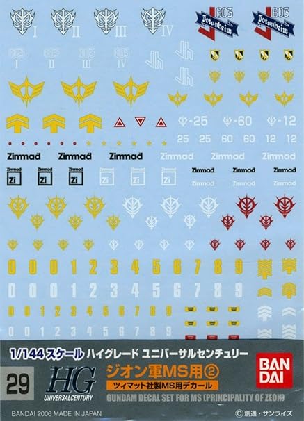 • Bandai Gundam Decal 29 HGUC - Wasserschiebe-Aufkleber Für Zeon MS2