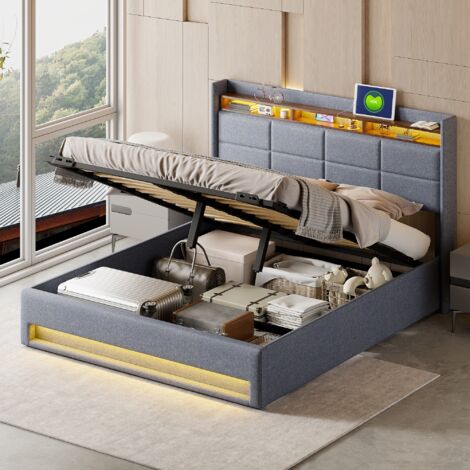 • Gxffipw Polsterbett 160x200 Mit Stauraum - Hydraulisches Bett Mit USB, LED & Kopfteil