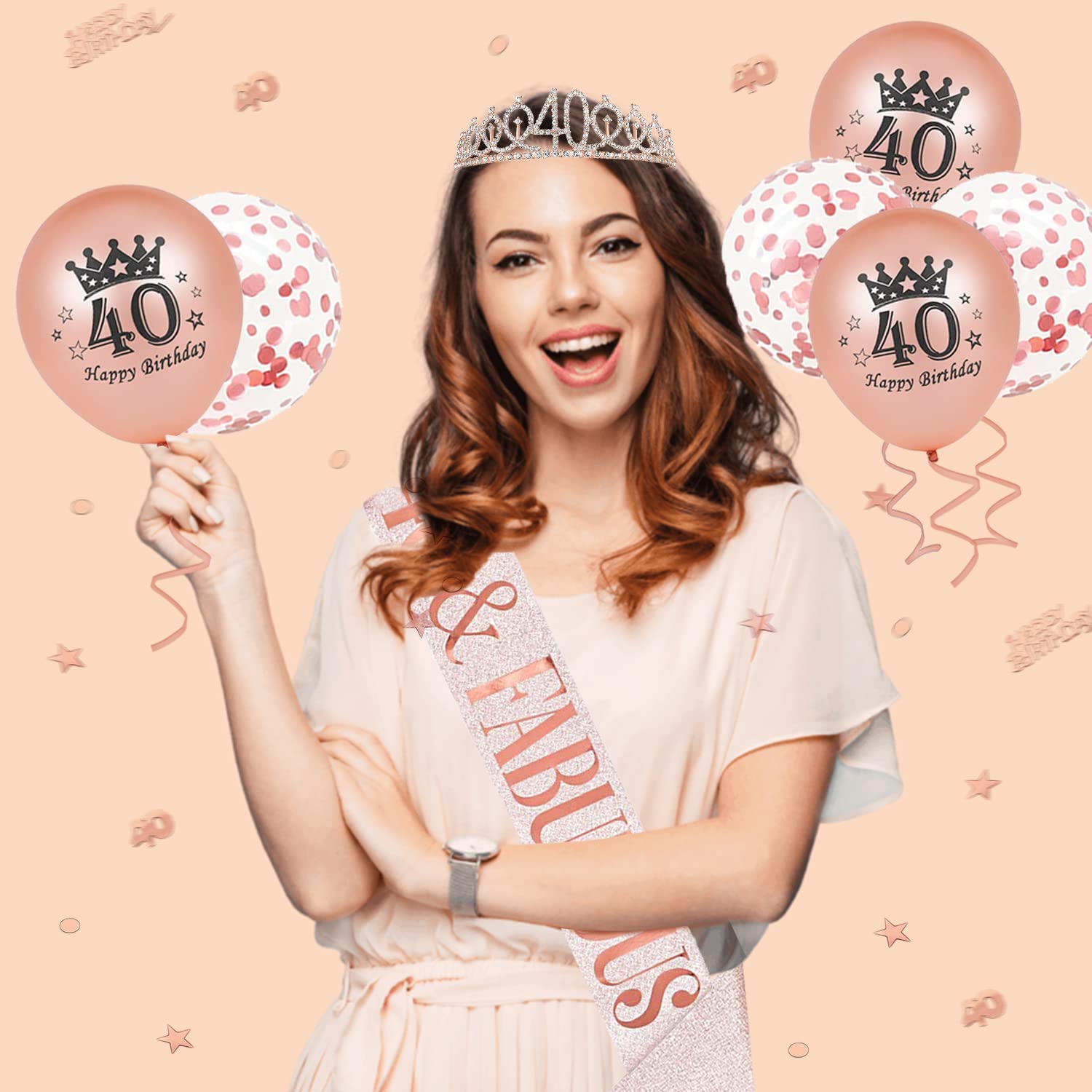 Alles für die perfekte 40. Geburtstagsfeier! Dieses Set enthält eine funkelnde Metall-Krone mit Strass, eine '40 & Fabulous' Schärpe und einen edlen Schlüsselanhänger - alles was du brauchst, um das Geburtstagskind gebührend in den Mittelpunkt zu stellen. Die Krone aus Metall-Legierung mit zwei Kämmen sitzt fest im Haar und macht jede Frau zur Geburtstags-Königin! Die Schärpe ist 158 cm lang und 9,5 cm breit - auffällig genug für alle Fotos. Der Schlüsselanhänger aus Legierung ist ein tolles Andenken für nach der Party. Perfekt für die Dekoration bei der Geburtstagsparty, als Fotorequisite oder einfach um Stimmung zu machen. Ob in Pink, Silber oder Weiß - dieses Set bringt Glamour in jede Feier. Die Geburtstagsgäste werden begeistert sein! Einfach aufsetzen, umhängen und strahlen - mehr braucht es nicht für einen unvergesslichen Tag. Und nach der Party kann der Schlüsselanhänger als bleibende Erinnerung an den tollen Tag dienen. Einfach perfekt für jede 40. Feier!