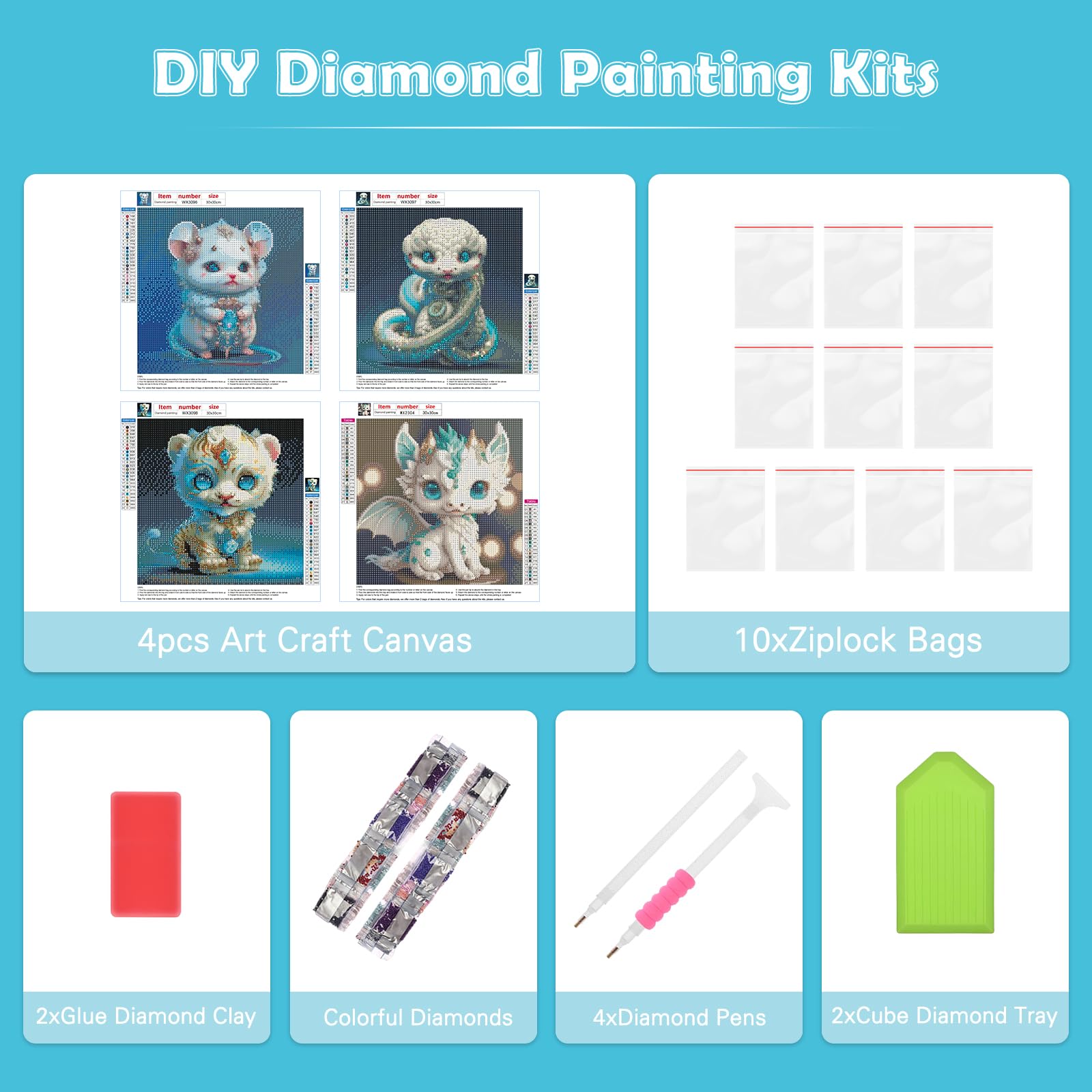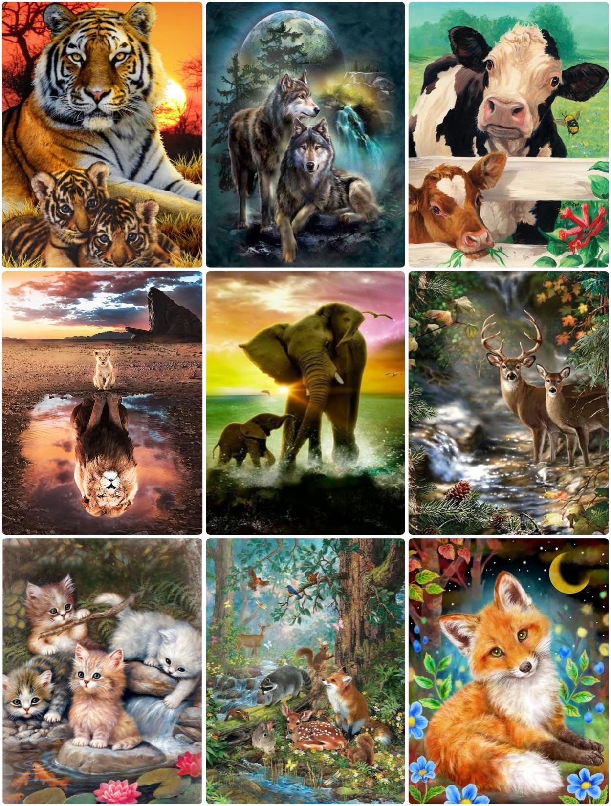 Wow, dieses Diamant Painting Set mit 9 verschiedenen Tiermotiven ist einfach mega! Jedes Bild 30x40cm groß - Tiger, Wolf, Pferd, Elefant und mehr. Full Drill bedeutet: komplett mit funkelnden Diamanten zu bekleben. Super entspannend und meditativ - perfekt zum Abschalten! Im Set ist alles dabei: Leinwand, Diamant-Stift, Wachs, Schale und natürlich die bunten Steinchen. Einfach die Diamanten auf die klebrige Leinwand drücken - schon entsteht ein glitzerndes Kunstwerk. Perfekt für Anfänger und Fortgeschrittene. Die fertigen Bilder sehen als Wanddekoration einfach fantastisch aus! Großartiges Geschenk für Geburtstage oder einfach so. Macht süchtig - aber auf die gute Art! Tauche ein in die Welt der funkelnden Diamant-Kunst und erschaffe deine eigenen Meisterwerke!