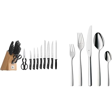 Koch-Enthusiasten aufgepasst! Dieses WMF Grand Class Messerset bietet alles für die professionelle Küche. 6 Teile: Messerblock, Kochmesser 20cm, Fleischmesser 20cm, Brotmesser 19cm, Gemüsemesser 9cm, Küchenschere. Geschmiedete Klingen aus Chrom-Molybdän-Vanadium-Stahl - Made in Germany! Performance Cut-Schliff für langanhaltende Schärfe. Ergonomische Griffe mit edler Nieten-Optik. Bambus-Block schützt die Messer und sieht dabei stylisch aus. Perfektes Geschenk für Hobbyköche und Profis. Hol dir jetzt deutsche Qualität für deine Küche!