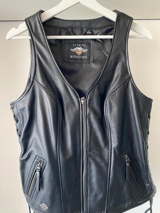 Hey Biker-Ladies! Diese coole Lederweste von Dream Apparel ist genau dein Style! Aus echtem 1,4-1,5mm Rindsleder gefertigt - super strapazierfähig und bietet echten Straßenschutz. Das coole: Sie hat versteckte Innentaschen mit integrierten Holstern, perfekt um deine Sachen sicher zu verstauen. Insgesamt 5 Taschen - da passt alles rein was du brauchst! Die seitlichen Schnürsenkel geben dir eine perfekte Passform und der geflochtene Leder-Zopf sieht einfach mega aus. Du kannst deine eigenen Patches aufnähen oder aufbügeln - so wird die Weste ganz individuell! Das Satinfutter innen ist super angenehm auf der Haut und die Weste ist wasserabweisend. Ob für die nächste Motorradtour, für Club-Treffen oder einfach nur für den coolen Look - diese Weste macht immer was her! Der Rückschlitz verhindert dass sich die Weste beim Sitzen aufstaut. Ein absolutes Must-Have für jede Bikerin die was auf sich hält!