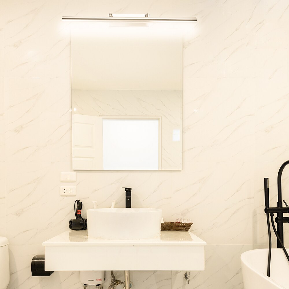 Mach dein Badezimmer zum Wohlfühl-Ort! Diese LED-Spiegellampe in 55cm Länge sorgt für perfektes Licht beim Schminken und Rasieren. Mit drei Lichtfarben: kaltweiß, warmweiß und neutral - einfach per Schalter wechseln. Die 10W LED-Leistung spart Energie bei vollem Lichtkomfort. Aus hochwertigem Eisen und PC - sieht edel aus und ist langlebig. Der IC-Treiber sorgt für stabilen Strom und Schutz vor Überlastung. Einfache Montage an der Wand - aber bitte vorher Strom ausschalten! Das moderne, schlanke Design passt in jedes Badezimmer. Endlich kein Schattenwurf mehr beim Schminken - mit dieser Lampe siehst du immer perfekt aus!