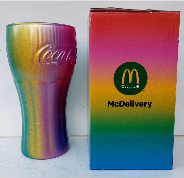 Ein echter Hingucker für alle McDonalds- und Cola-Fans! Dieses besondere Regenbogen-Glas aus der McDonalds Österreich 2022 Kollektion ist ein absolutes Must-Have für Sammler. Das Bundle beinhaltet nicht nur das stylische Glas mit dem charakteristischen Regenbogen-Design, sondern auch den exklusiven Sefrado-Untersetzer - zusammen einfach unschlagbar! Perfekt für deine nächste Cola, aber auch für andere Getränke super geeignet. Limited Edition - also schnell zugreifen, bevor sie weg sind! Ob als Ergänzung zu deiner Sammlung oder als besonderes Geschenk für einen McDonalds-Liebhaber - dieses Glas macht immer eine gute Figur. Die Qualität stimmt und das Design ist einfach ikonisch. Ein Stück McDonalds-Geschichte für dein Zuhause!