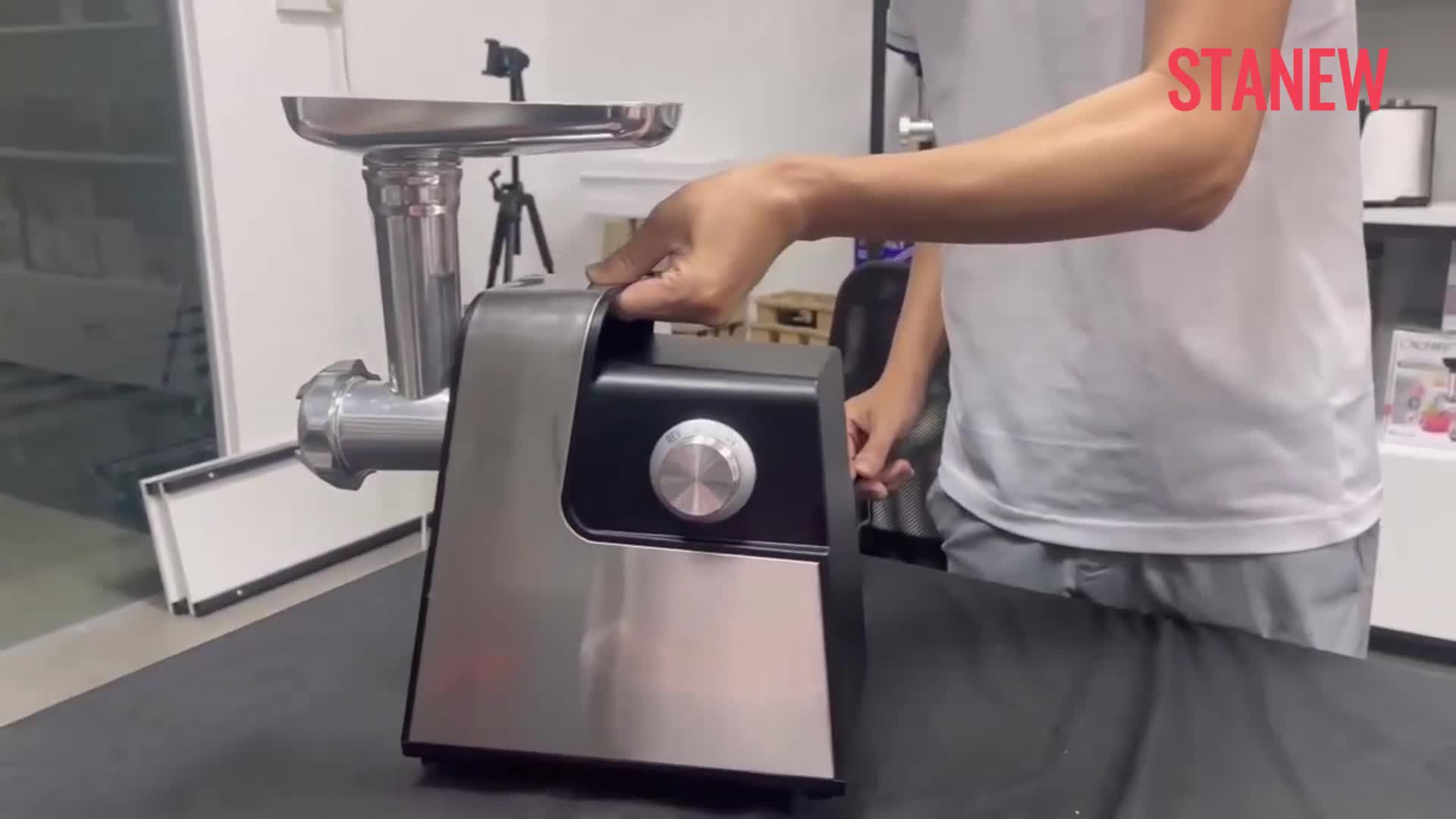 Boah, dieser Fleischwolf ist ja mal richtig stark! Mit 1000W Spitzenleistung macht der alles klein - ob Rind, Schwein, Huhn oder sogar Gemüse. Im Set sind 3 Edelstahl-Mahlplatten dabei: grob, mittel und fein, plus Wurstfüller für deine eigenen Würste! Das 45°-Schneckendesign verstopft nicht und die Umkehrfunktion hilft bei Blockaden. Super sicher mit Überhitzungsschutz und Verriegelung. Die rutschfesten Füße mit Saugnäpfen halten das Teil bombenfest auf der Arbeitsplatte. Reinigen ist auch kein Problem - alles abnehmbar und spülmaschinengeeignet. Ob für Burger-Patties, Bolognese, Frikadellen oder selbstgemachte Würste - damit wirst du zum Küchenprofi! Das lange Kabel gibt dir genug Bewegungsfreiheit in der Küche. Aus lebensmittelechtem Edelstahl und Kunststoff - hält ewig und ist absolut hygienisch. Einfach Fleisch rein, Knopf drücken und staunen, wie schnell das geht!