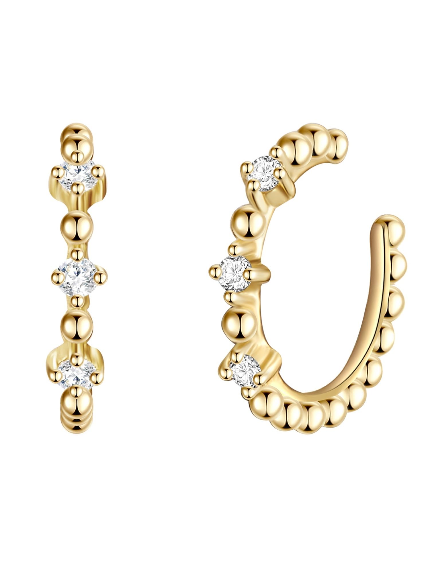 Wow, dieser Earcuff ist ja mal der absolute Hingucker! Die Ohrklemme aus 925 Sterling Silber, gelbvergoldet, schmiegt sich wie gemacht an deine Ohrmuschel. Das Besondere: Du brauchst keine Ohrlöcher! Einfach an die gewünschte Stelle klemmen und schon glänzt du mit diesem stylischen Accessoire. Die filigranen Metallperlen sehen aus wie kleine Kunstwerke und machen jedes Outfit sofort edler. Perfekt für besondere Anlässe, Partys oder einfach um im Alltag etwas Glamour zu versprühen. Du kannst sie alleine tragen oder mit anderen Ohrringen kombinieren - deiner Kreativität sind keine Grenzen gesetzt. Mit 16,9 mm Höhe ist sie auffällig genug, um Aufmerksamkeit zu erregen, aber nicht zu aufdringlich. Wird in einer hübschen Geschenkbox geliefert - ideal zum Verschenken oder um dir selbst was Gutes zu tun. Hol dir den Trend und werde zum Fashion-Statement!