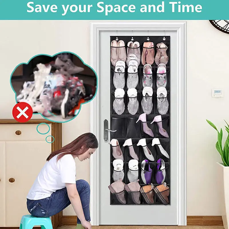 Dieser geniale Schuhorganizer von JINGIHE bringt endlich Ordnung in dein Schuh-Chaos! Mit 24 einzelnen Taschen bietet er Platz für deine gesamte Schuhsammlung. Die Maße von 150x45cm sind perfekt für die meisten Zimmertüren. Das beste: Er hängt einfach mit 3 Haken an der Tür - kein Bohren, kein Schrauben, kein Stress! Die transparenten PVC-Taschen ermöglichen dir einen schnellen Überblick über deine Schuhe - kein langes Suchen mehr! Das Vliesstoff-Futter schützt deine Schuhe vor Feuchtigkeit und Schimmel. Besonders praktisch: Du kannst nicht nur Schuhe darin verstauen, sondern auch Schuhzubehör wie Einlegesohlen, Schnürsenkel oder Pflegemittel. Der Organizer ist super stabil und hält auch schwerere Schuhe problemlos aus. Die Reinigung ist ein Kinderspiel - einfach mit einem feuchten Tuch abwischen. Perfekt für den Eingangsbereich, das Schlafzimmer, den Kleiderschrank oder sogar das Badezimmer! Er spart unglaublich viel Platz und verwandelt ungenutzten Türbereich in praktischen Stauraum. Einfach aufhängen, Schuhe sortieren und sich über die neu gewonnene Ordnung freuen! Ein absolutes Must-Have für alle, die ihre Schuhe ordentlich und griffbereit aufbewahren wollen.
