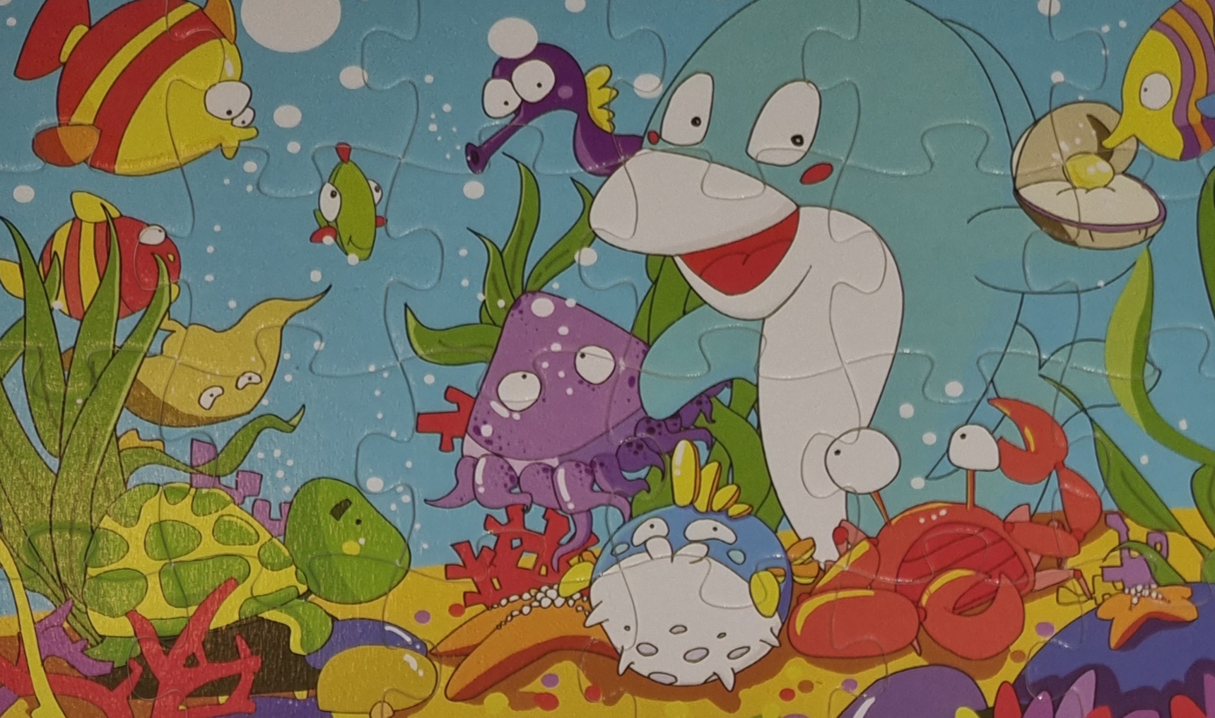 Dieses Holzpuzzle mit Unterwasser-Motiv ist einfach wunderschön! 100 Teile in einzigartigen Formen - Muscheln, Fische und Meerestiere. Nach dem Puzzeln kannst du es als Wanddekoration aufhängen.