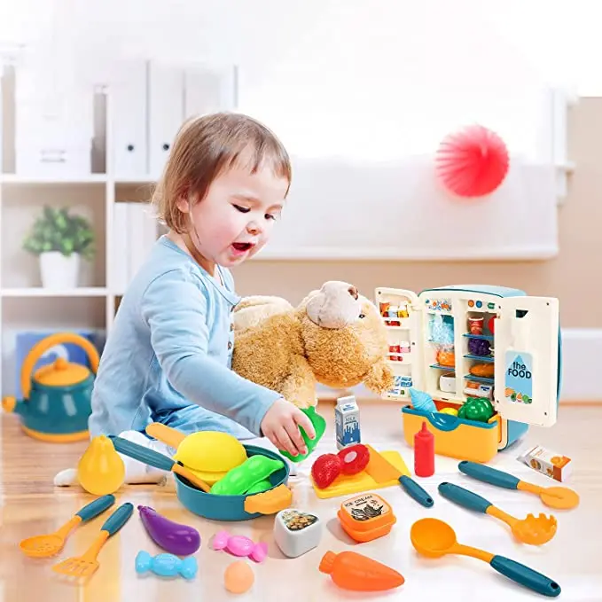 Die komplette Kinderküche in einem Set! Dieser PLAY Kühlschrank hat alles, was kleine Köche brauchen: Eisspender mit Wassergeräuschen, 6 Musikstücke und jede Menge Zubehör. Sogar ein separater Gefrierschrank für Snacks!