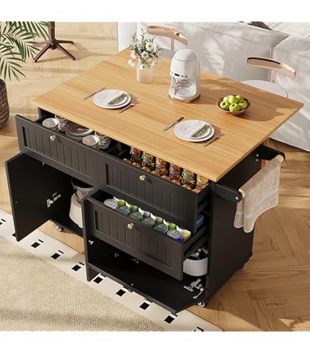 Alter, diese Kücheninsel von DRIXNO ist ja mal richtig clever durchdacht! Mit 135 cm Länge und 86,6 cm Höhe bietet sie richtig viel Arbeitsfläche und Stauraum. Das geniale: Die abnehmbaren Trennwände lassen sich ausklappen, sodass die Breite von 46 auf 74 cm erweitert werden kann - perfekt wenn mal mehr Platz zum Arbeiten oder Essen needed ist. Die 5 feststellbaren Rollen machen die Insel total mobil - einfach dorthin schieben, wo du sie gerade brauchst, und dann fixieren. Drei geräumige Schubladen und das praktische Snackregal bieten unheimlich viel Stauraum für Küchenutensilien, Gewürze oder was auch immer du ordentlich verstauen willst. Die Tischplatte aus hochwertiger MDF-Platte mit Holzmaserung ist robust und ideal zum Gemüseschneiden oder Zubereiten von Speisen. Der seitliche Handtuchhalter ist auch super praktisch - immer ein Geschirrtuch griffbereit! Mit 48,7 kg Gewicht und einer Traglast von 60 kg ist das Teil richtig stabil verarbeitet. In nur 30 Minuten ist die Montage erledigt und du hast deine multifunktionale Küchenhilfe parat!