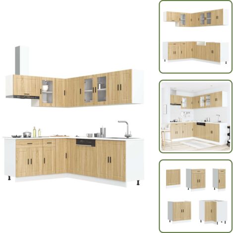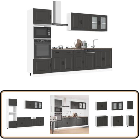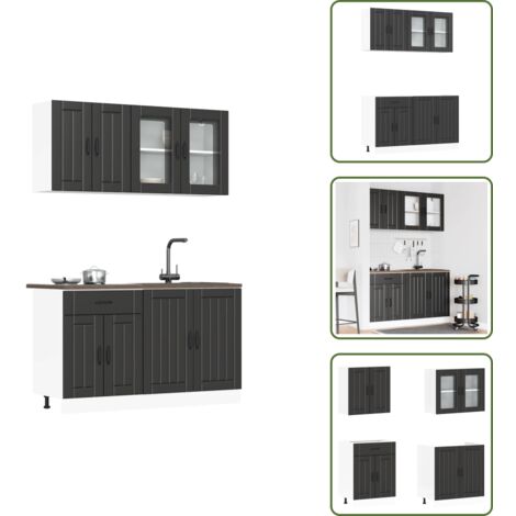 Na, willst du deine Küche aufpeppen? Dieses 4-teilige Schrank-Set von vidaXL ist genau das Richtige! Enthält: 1 Spülenunterschrank (80x46x81,5cm), 1 Küchenunterschrank (60x46x81,5cm), 1 Hängeschrank (60x31x60cm) und 1 Hängeschrank mit Glastüren (80x31x60cm). Aus robustem Holzwerkstoff in Schwarz, feuchtigkeitsresistent und pflegeleicht - einfach mit nem feuchten Tuch abwischen. Verstellbare Füße für nen ebenen Stand, und super viel Stauraum für Töpfe, Teller und mehr. Modernes Design, das sich gut in jede Küche einfügt. Montage nötig, aber mit Anleitung machbar. Schrauben und Dübel nicht im Lieferumfang, also die passenden besorgen. Ein praktisches Set für mehr Ordnung und Style!