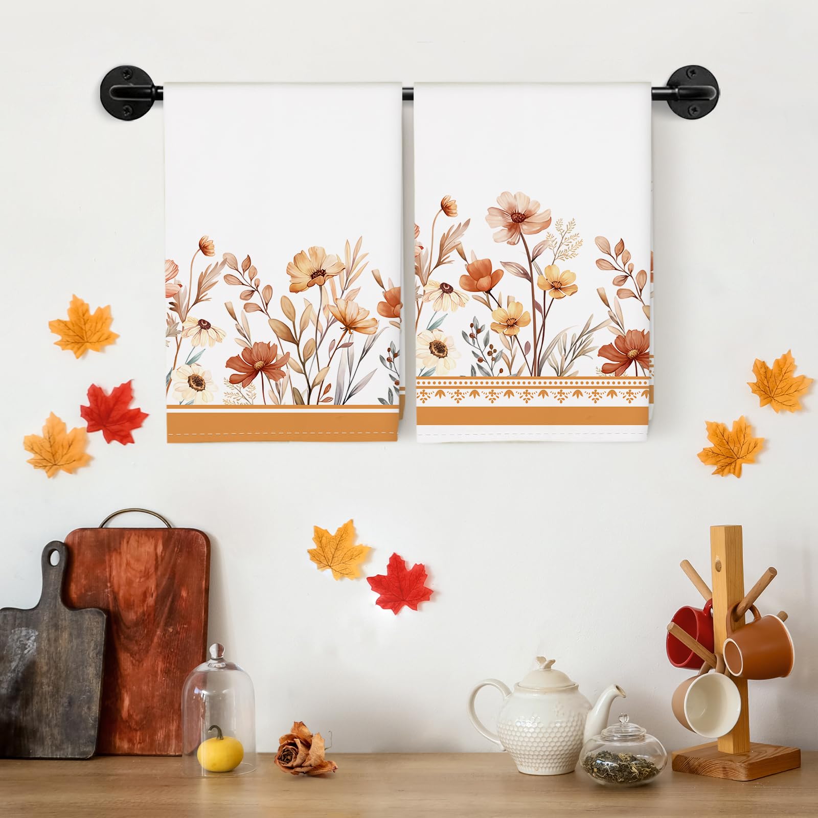 • Arquiel Küchentücher Baumwolle 4 Stück - Herbst Design Mit Eichhörnchen & Ahornblatt