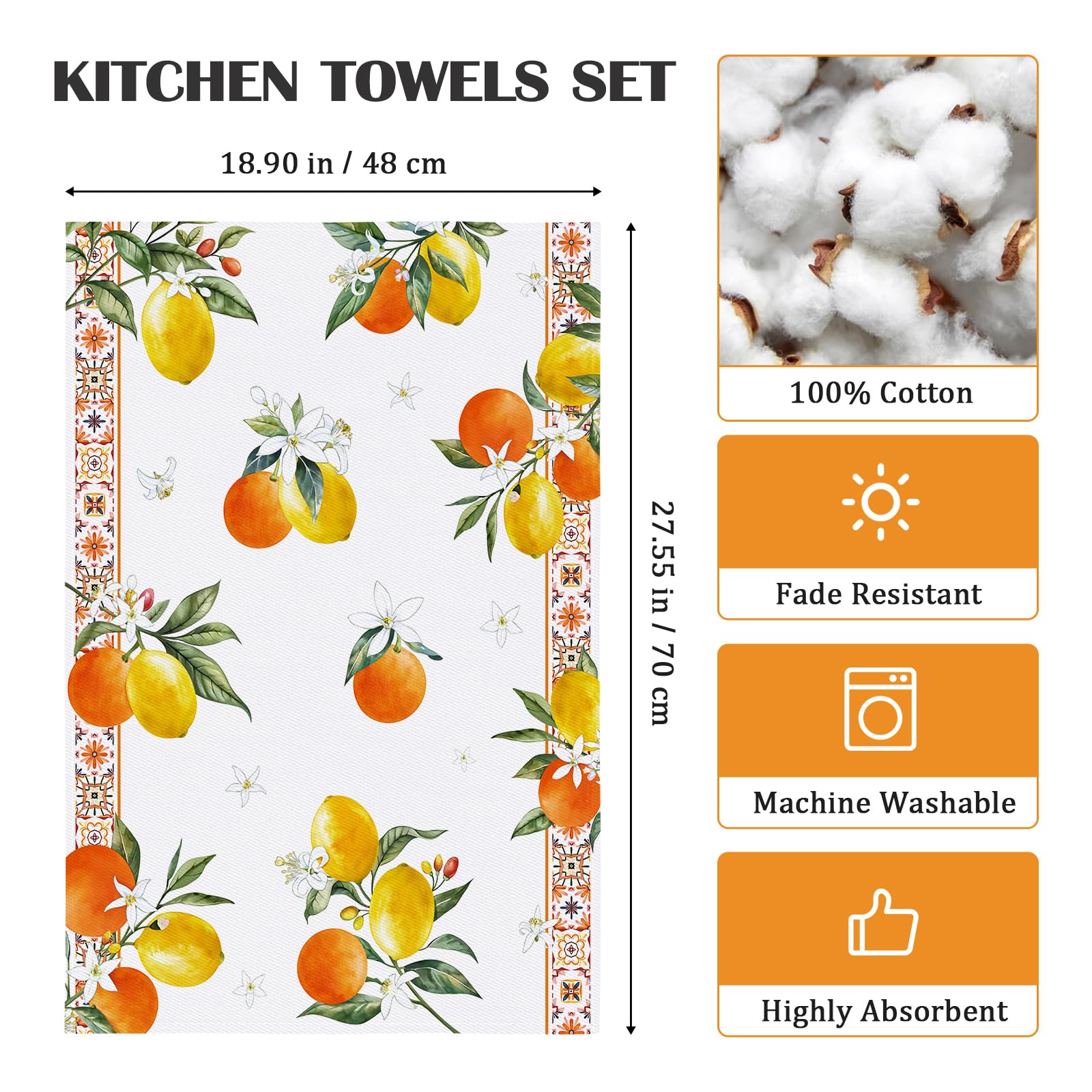 Arquiel Küchentücher Baumwolle 4 Stück - Herbst Design Mit Eichhörnchen & Ahornblatt