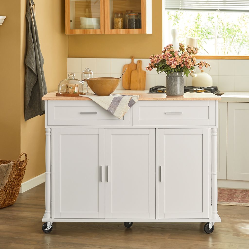 Brauchst du mehr Arbeitsfläche und Stauraum in deiner Küche? Diese praktische Kücheninsel von SoBuy ist die perfekte Lösung! Mit 108x89x48 cm bietet sie dir nicht nur eine große Arbeitsplatte aus robustem Kautschukholz, sondern auch jede Menge Stauraum.